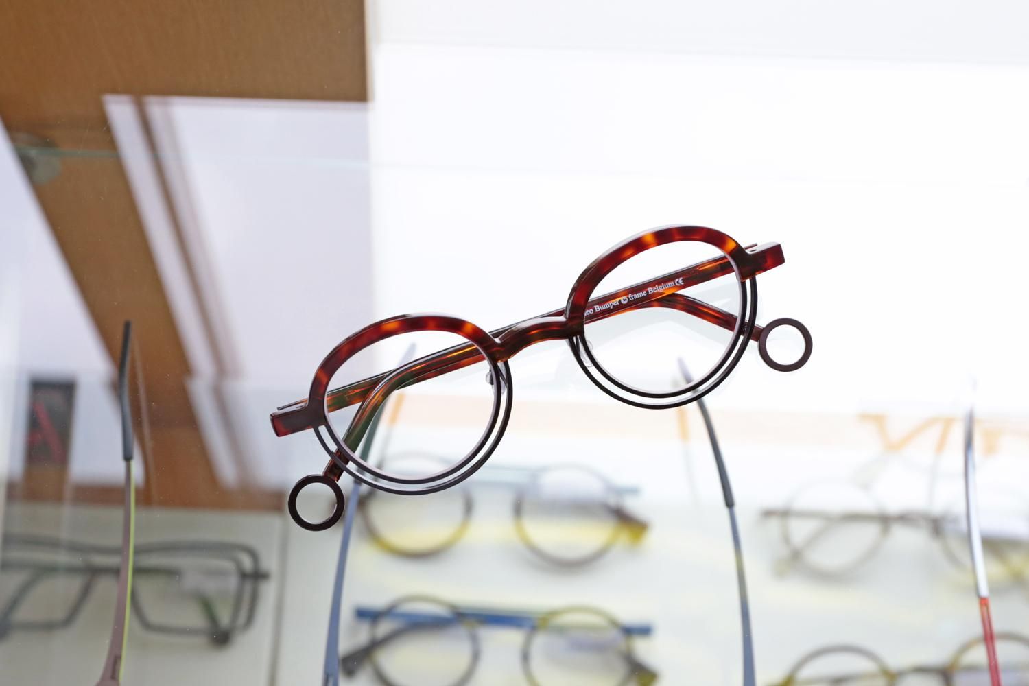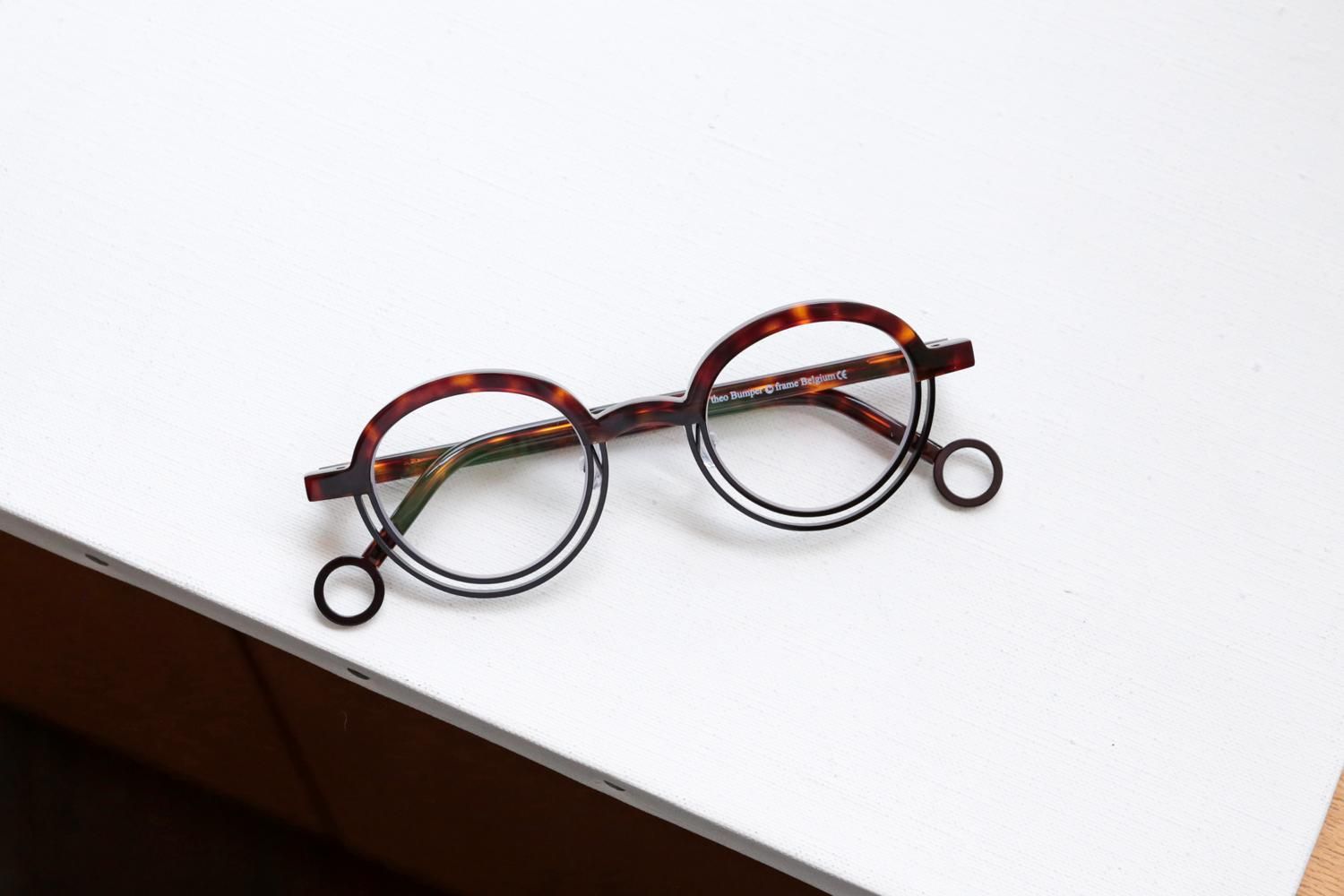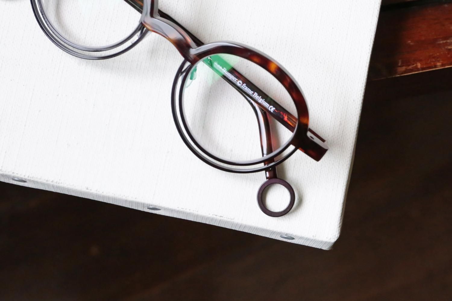 ブローラインを肉厚のセルフレーム、レンズの下部はスリットの入ったメタル