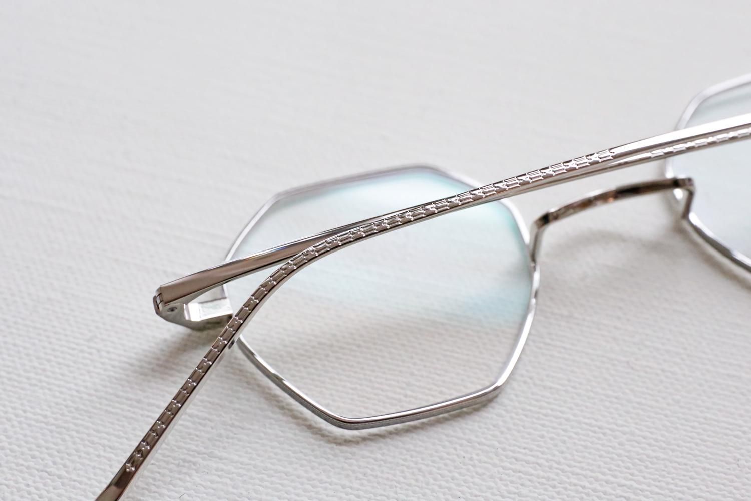 リムやテンプルには亀の彫金も施されていてさり気なくも品の良さが演出されます。