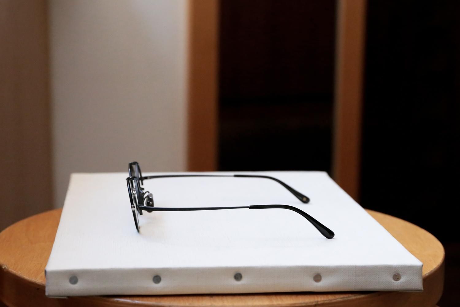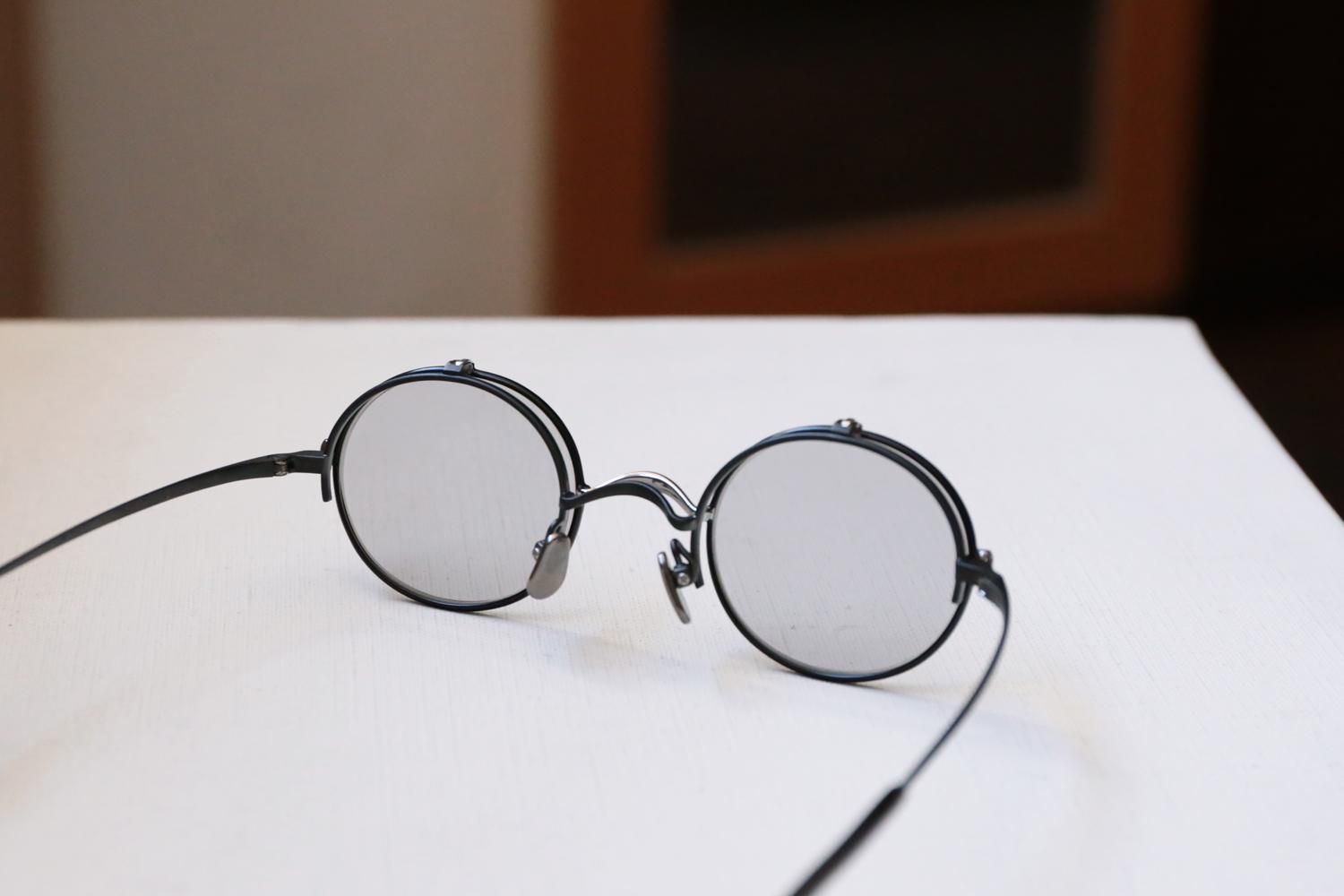 跳ね上げ眼鏡は前枠が2つ重なっている様な構造なので少し重く感じるかもしれないですが、レンズシェイプが小さめのため思ったより軽く感じられます。