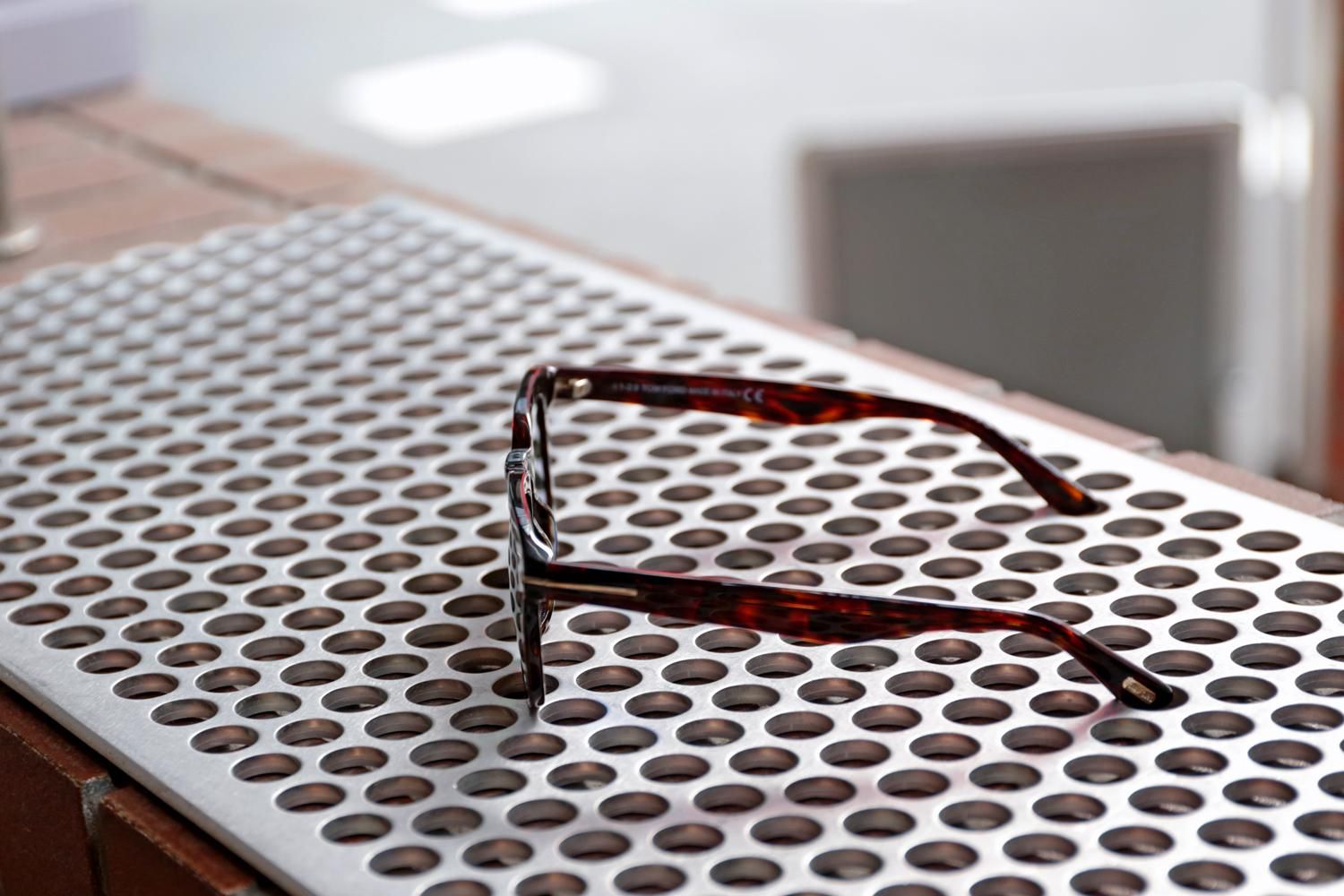 ウェリントン型とスクエア型を掛け合わせたような、存在感のある独特のフレームシェイプが特徴です。