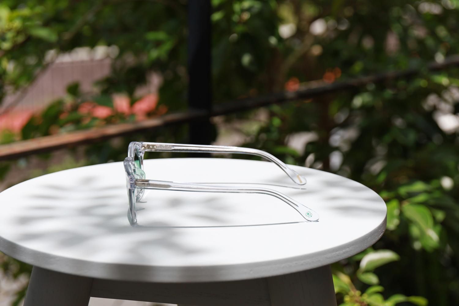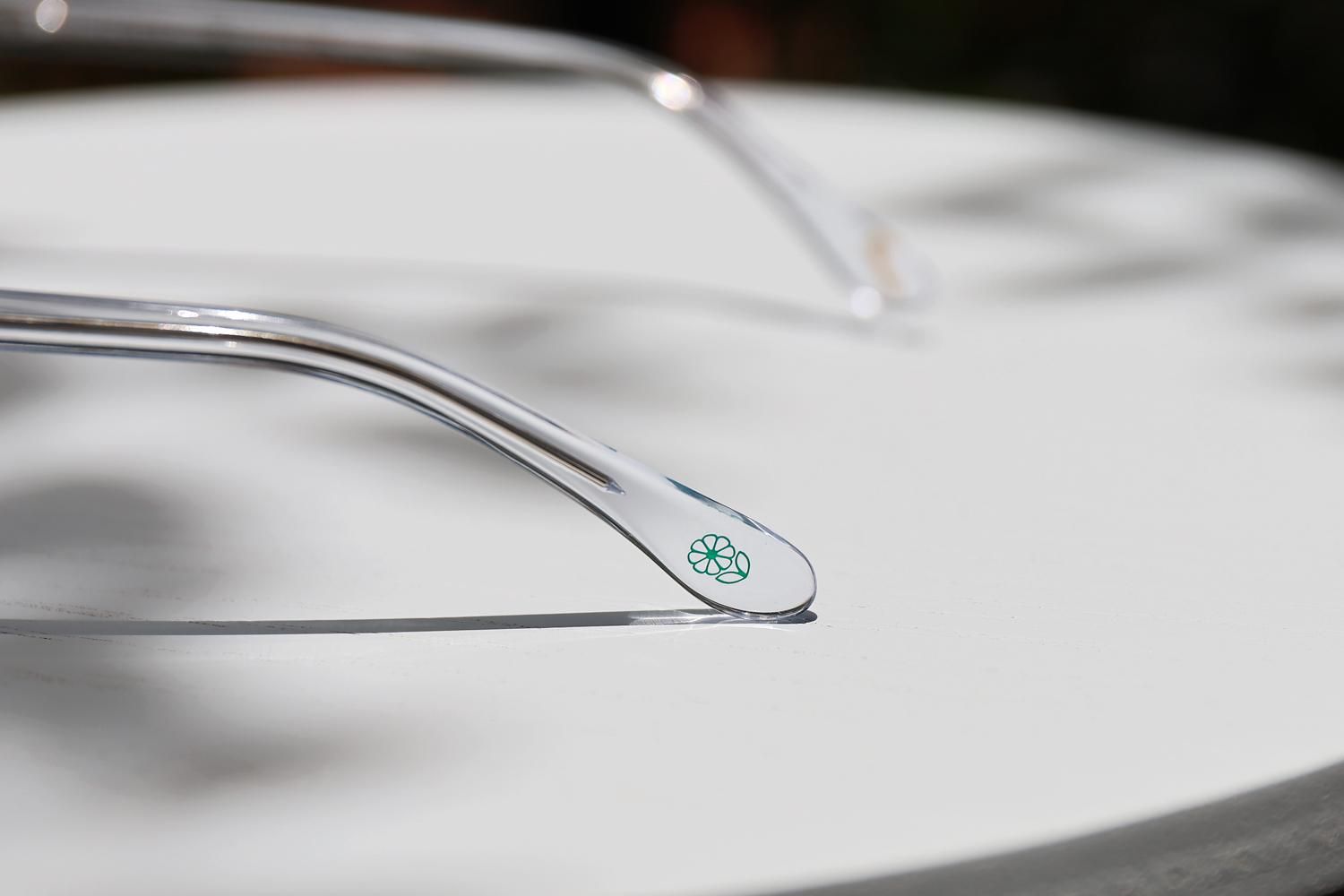 サスティナブルブランドを象徴するテンプルエンドのウッドチップがアクセントとなっている。