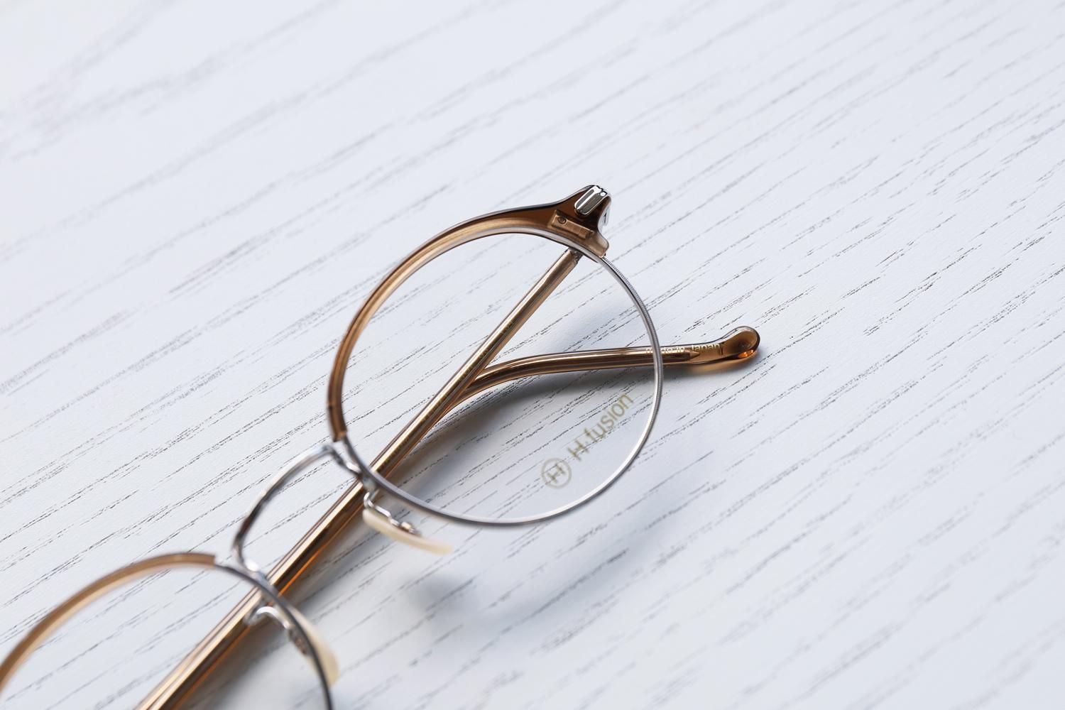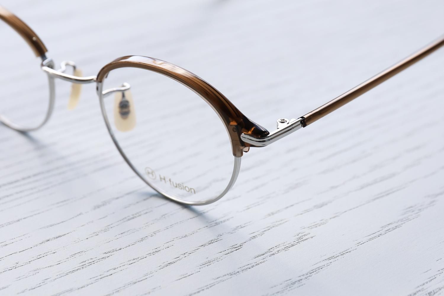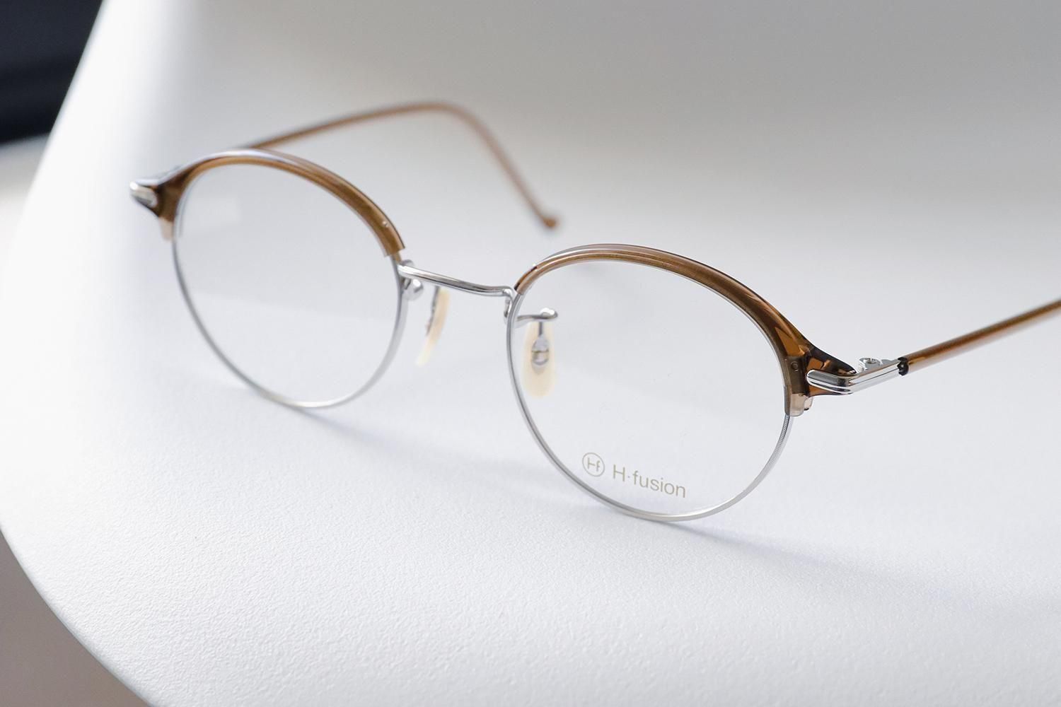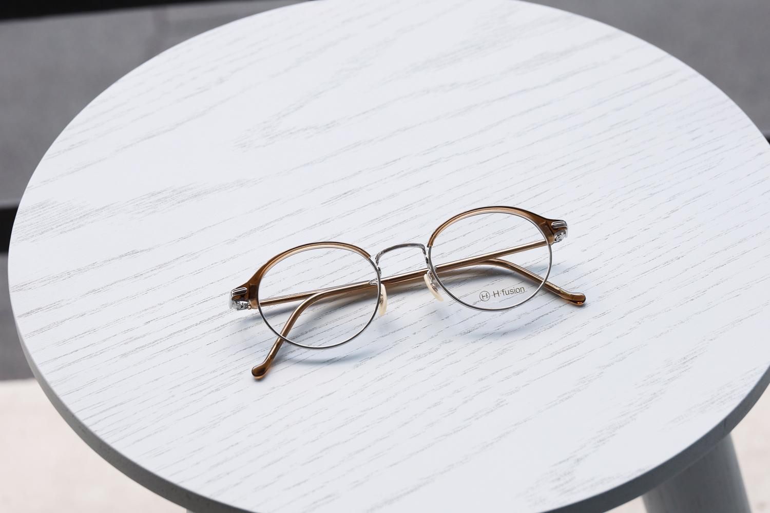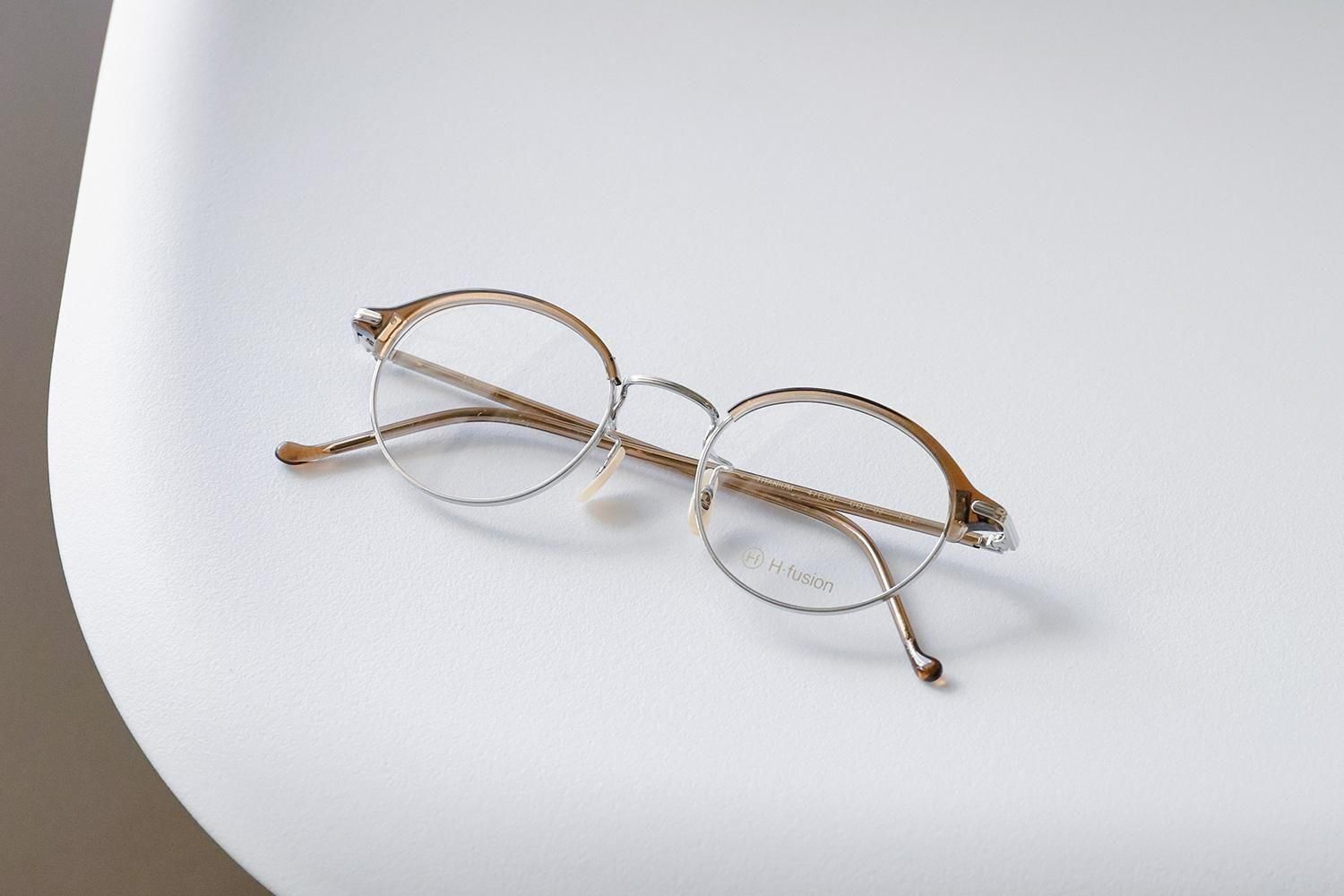 ブローのアセテートはクリア系の色味で細身なので重くなりすぎない。