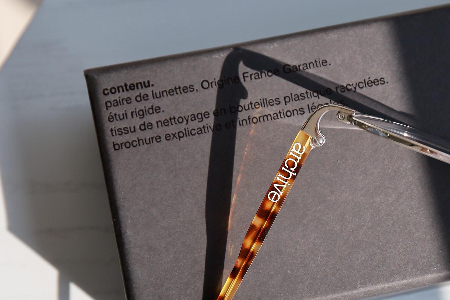 テンプルに刻印されている「Monture Origine France Garantie」の文字は、製造工程のすべてをフランス国内で行っていることを証明するもの。