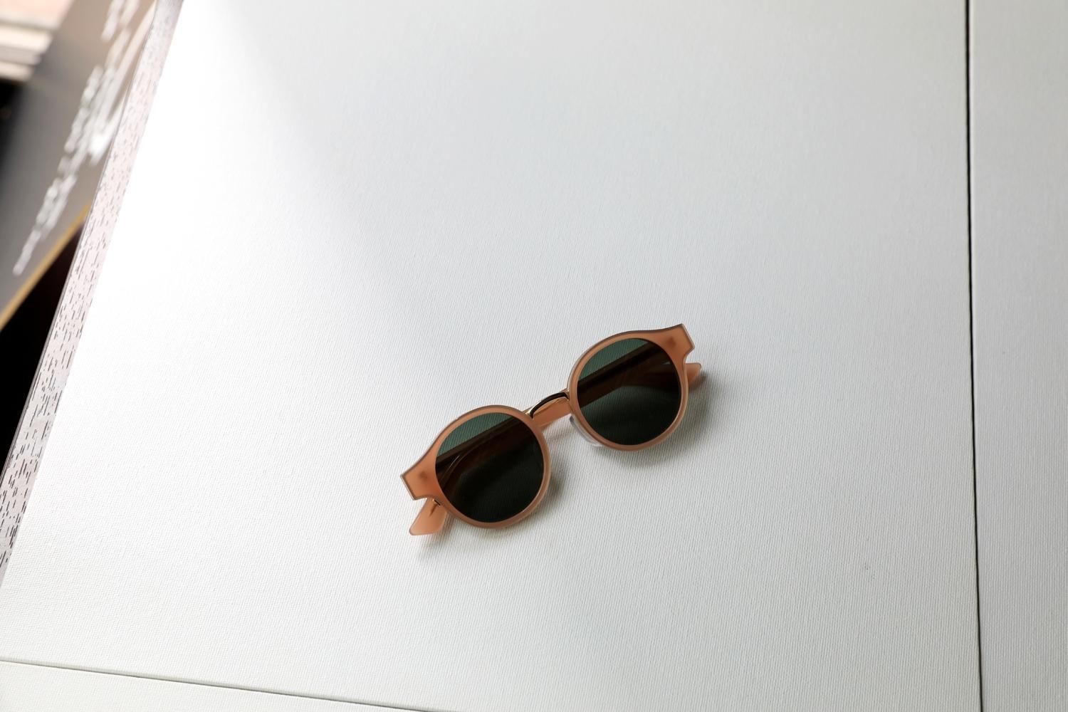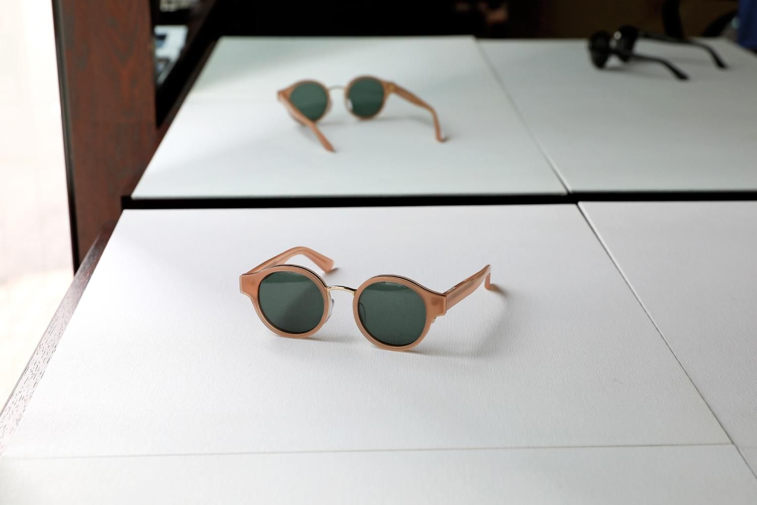 ミドルサイズのラウンド型レンズに智の張ったフレームデザインの組み合わせがユニークな"MAURICE"