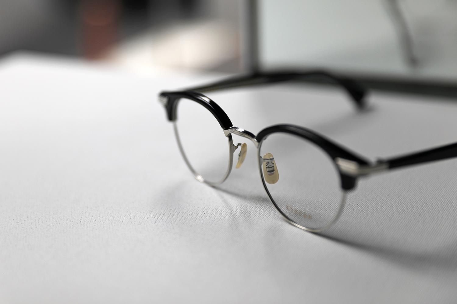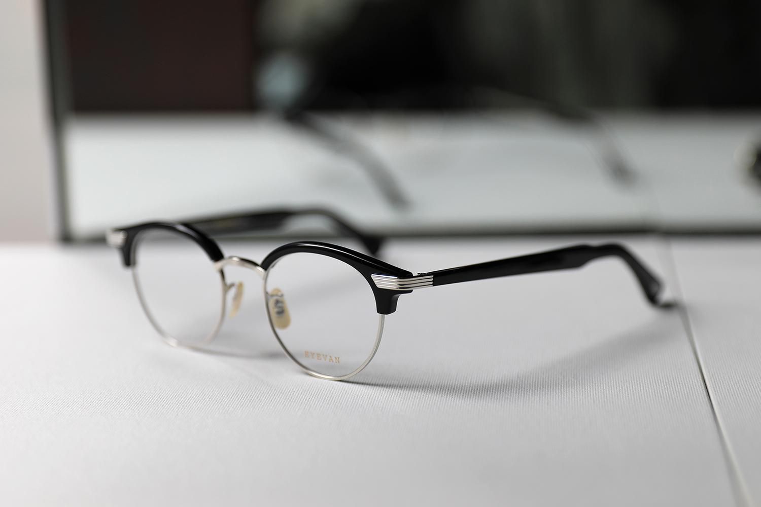 あえてブリッジには繊細なデザイン、玉形にはモダンなシェイプを組み合わせることでオリジナルのヴィンテージがもつ武骨さに繊細なイメージをMIXしたEYEVANらしい新しいサーモントブロウとなった。