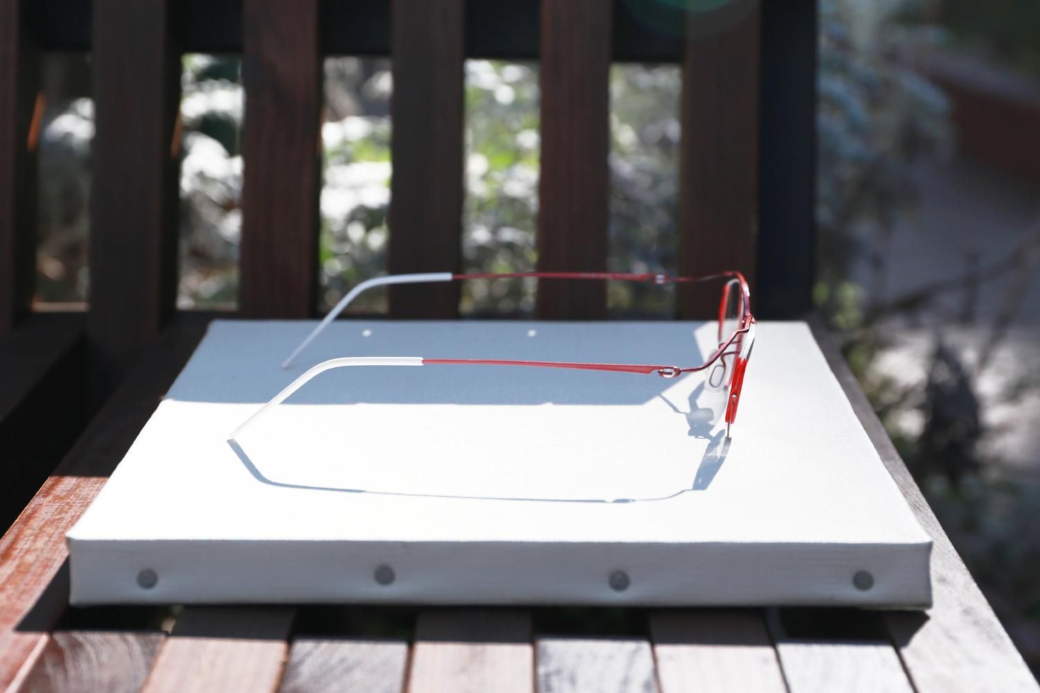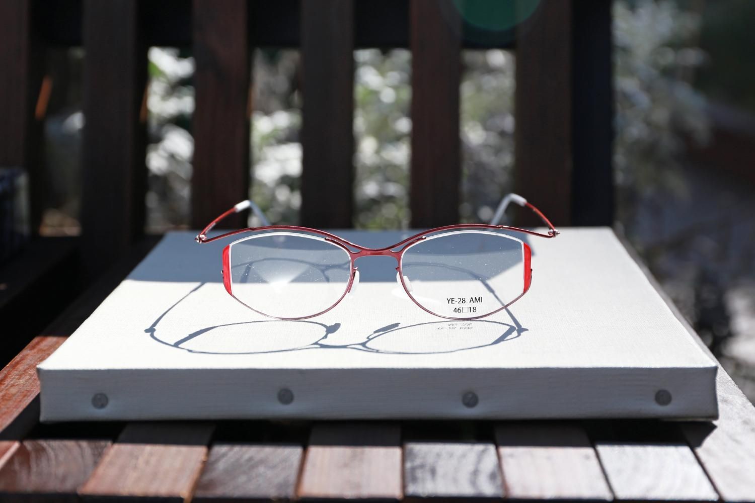ネジを使わず、フロント上部のバーとレンズが分離している構造、そして超軽量フレーム。