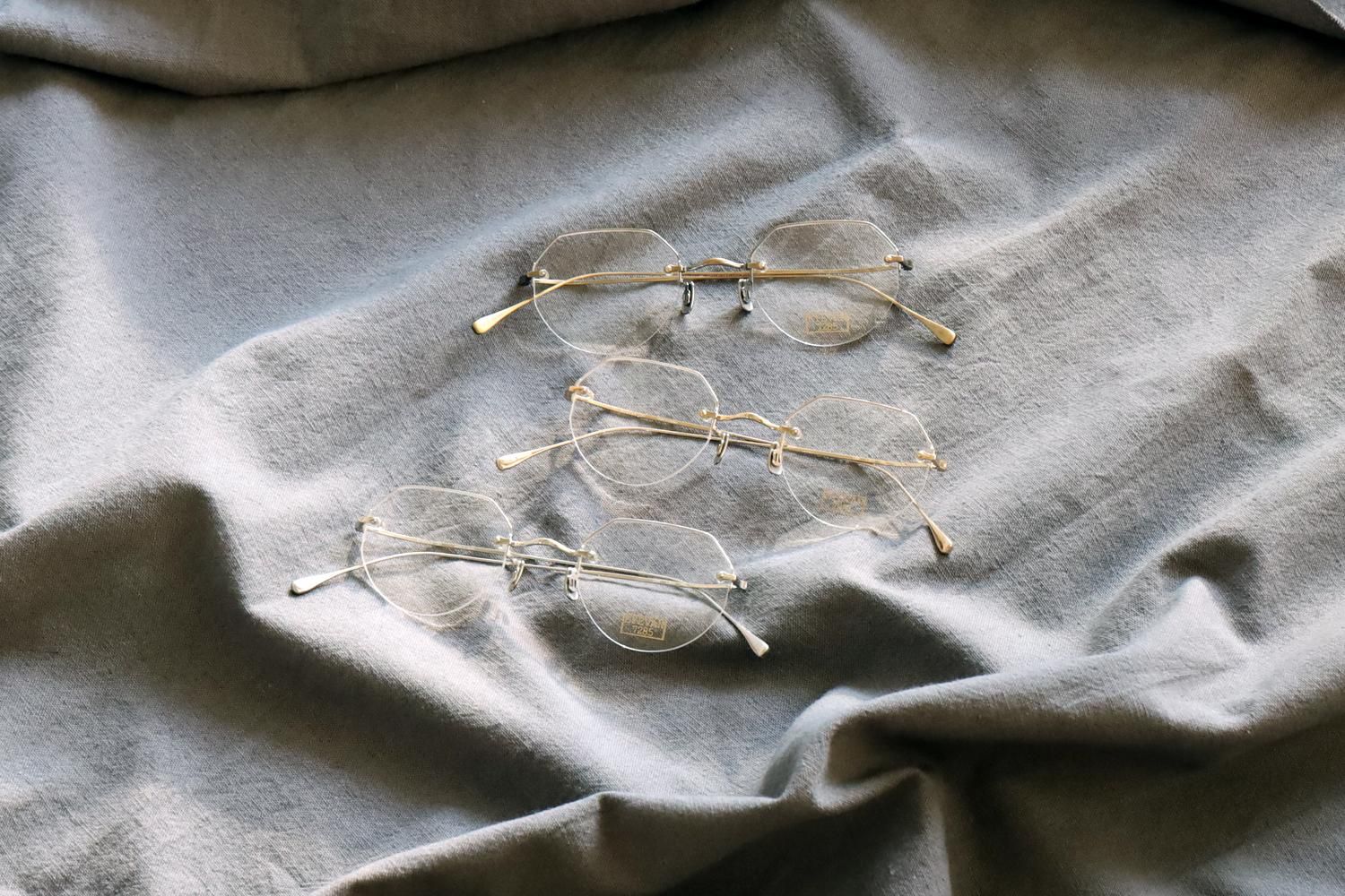 ブリッジ、ヨロイはそれぞれツカミ(レンズをネジで固定するパーツ)を一体化させた画期的な構造。モデル[175]から継続して提案している外側へ広がるフォルムが特徴的なβチタンテンプルはブリティッシュヴィンテージをソースとした形状。クラシックデザインを新たなアイデアで再構築した7285らしい独創的なプロダクト。