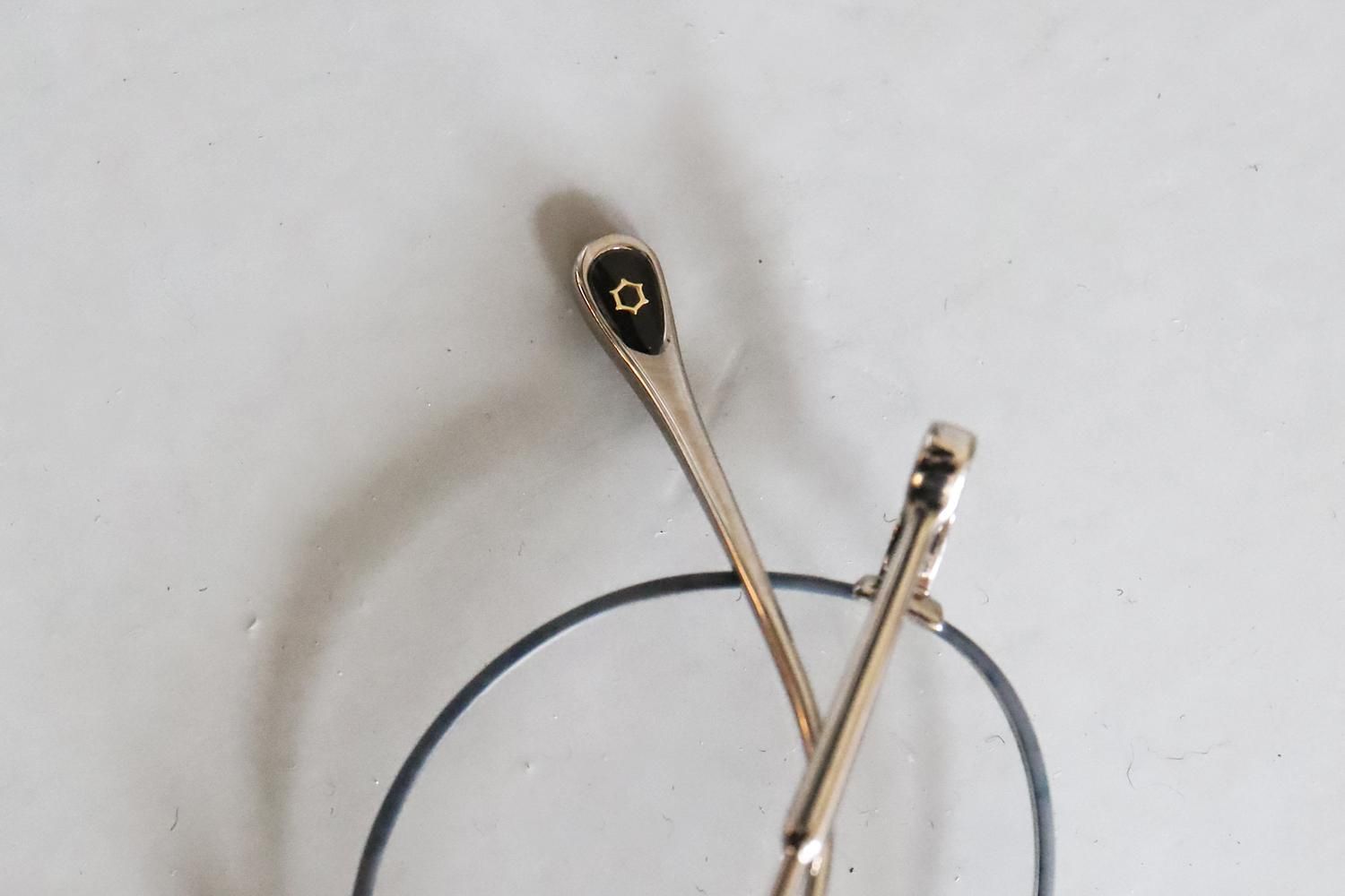 品のあるボストン型のシルエットが洗練された雰囲気を添え、リムに施された丁寧な七宝のディテールが際立ちます。