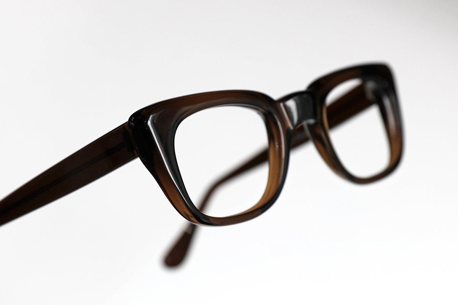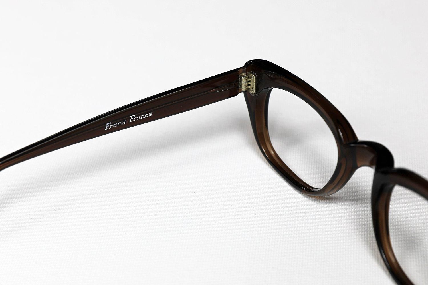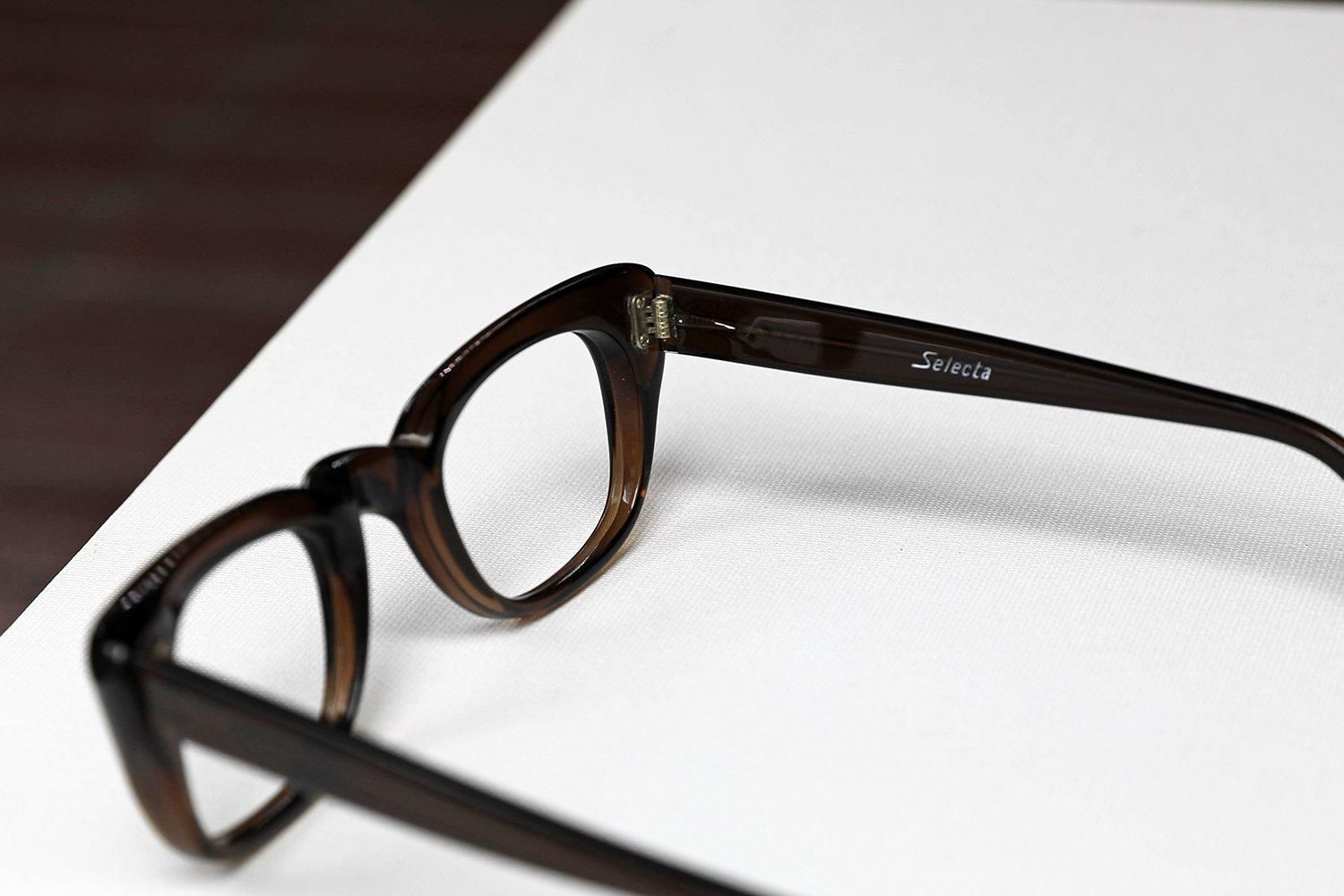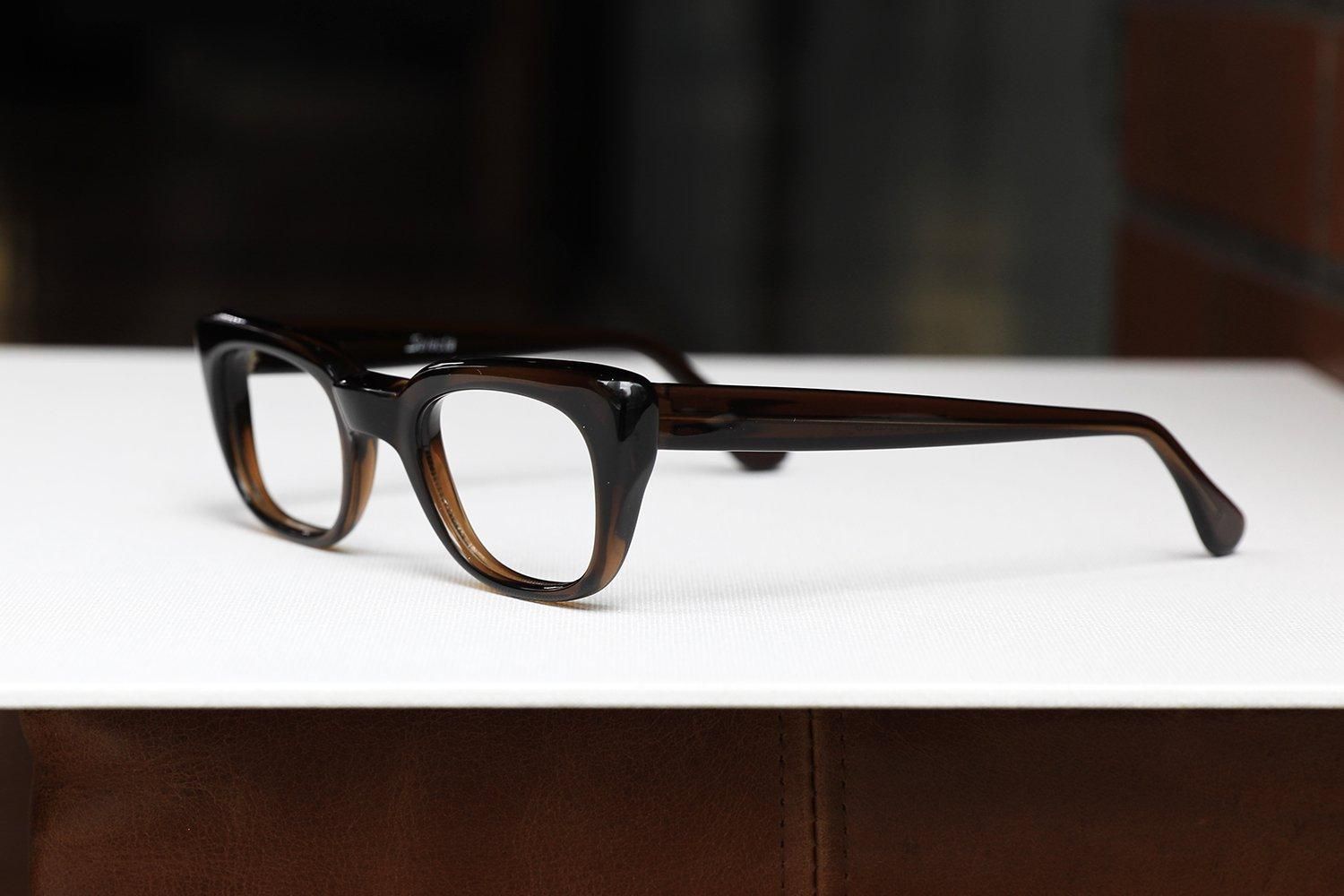 このモデルの殆どが、日本でも人気のアイウェアブランド「Lesca Lunetier」で生産されていたということもあり、肉厚でとろみのある甲丸磨きのアセテートと、前に突き出した山なりのブリッジが特徴。サイズ感も程良く、オンオフ問わず使える名品です。