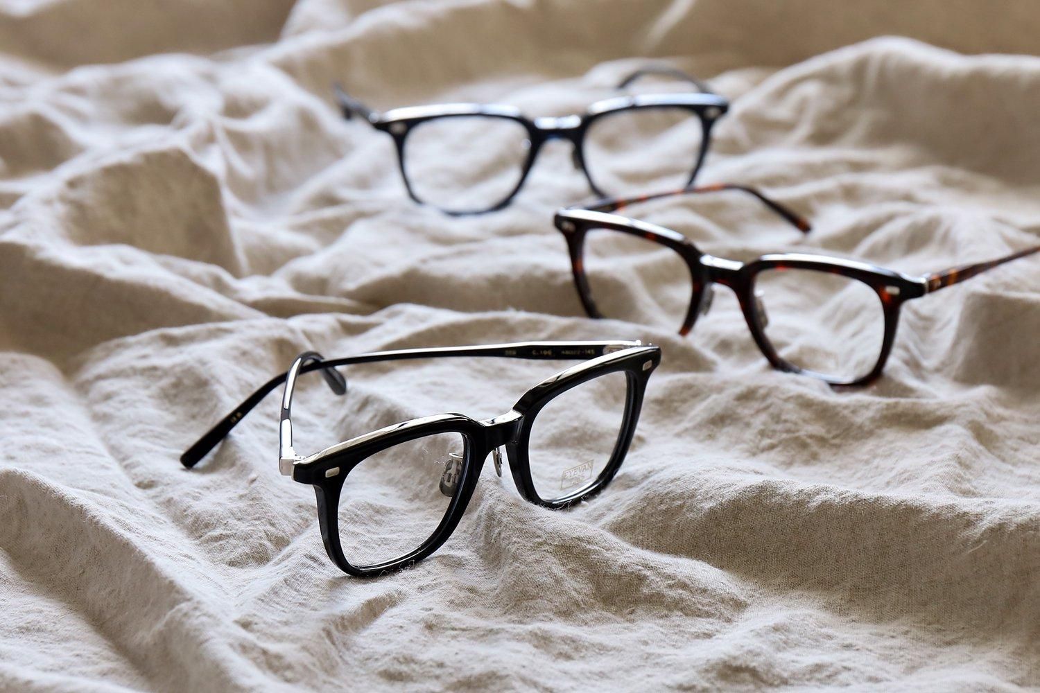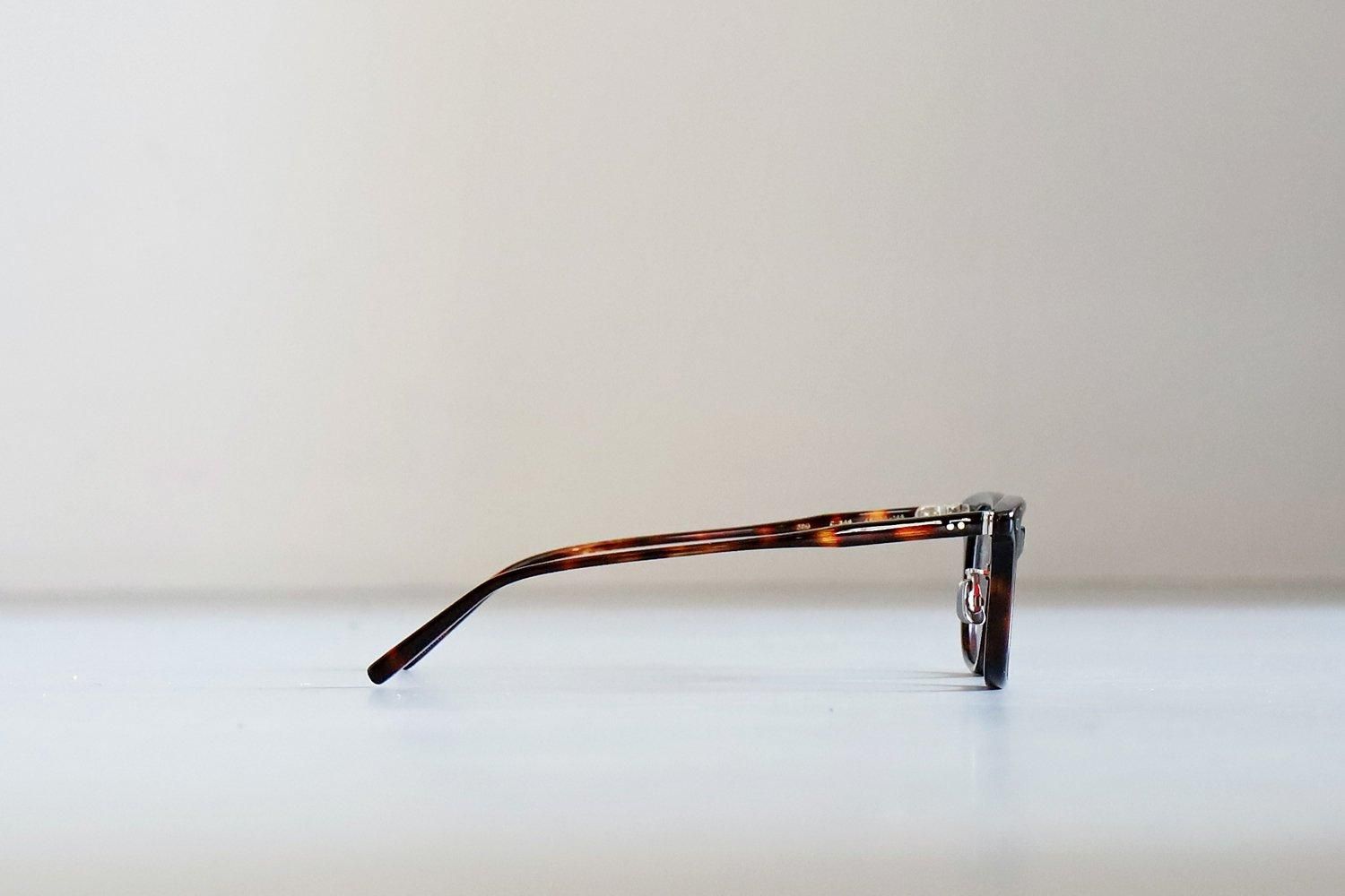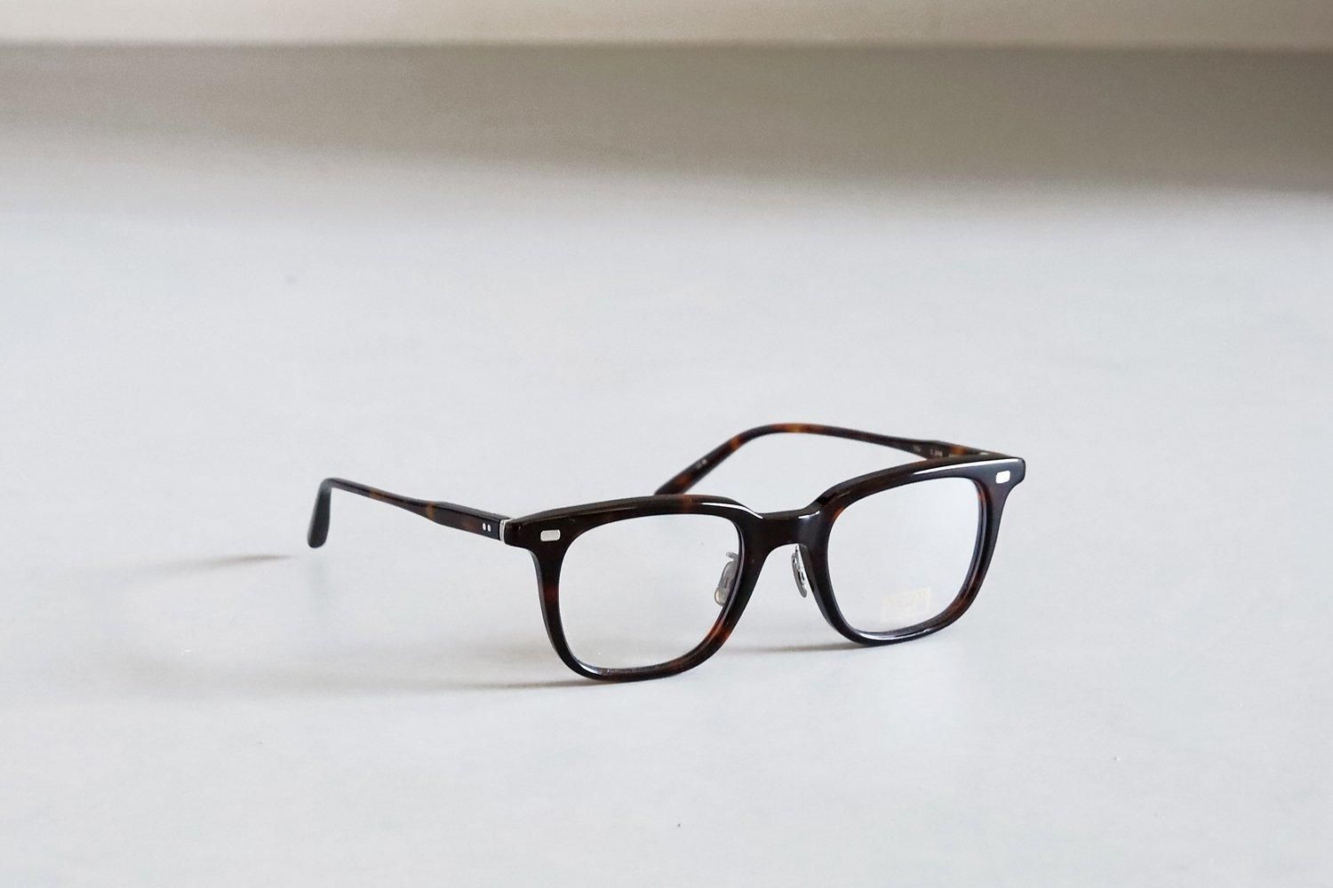 EYEVAN 7285のマスターピースモデル[319]のデザインソースとなった50年代のアメリカンヴィンテージをより忠実に再現したモデル。細い智と相反してブリッジが太いというヴィンテージ特有のアンバランスなデザインが特徴。カシメ飾りは職人が眼鏡一枚ずつ丁寧に研磨する研ぎ出しによる製法。サンプラチナの鋲とプラスチックが一体化し、美しい意匠を創出している。サングラスは色味の調合からメーカーと開発したガラス製オリジナルの「アイヴァンカーブレンズ」を採用。