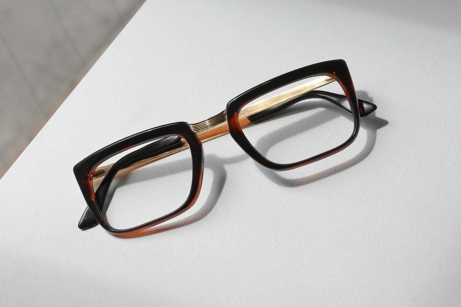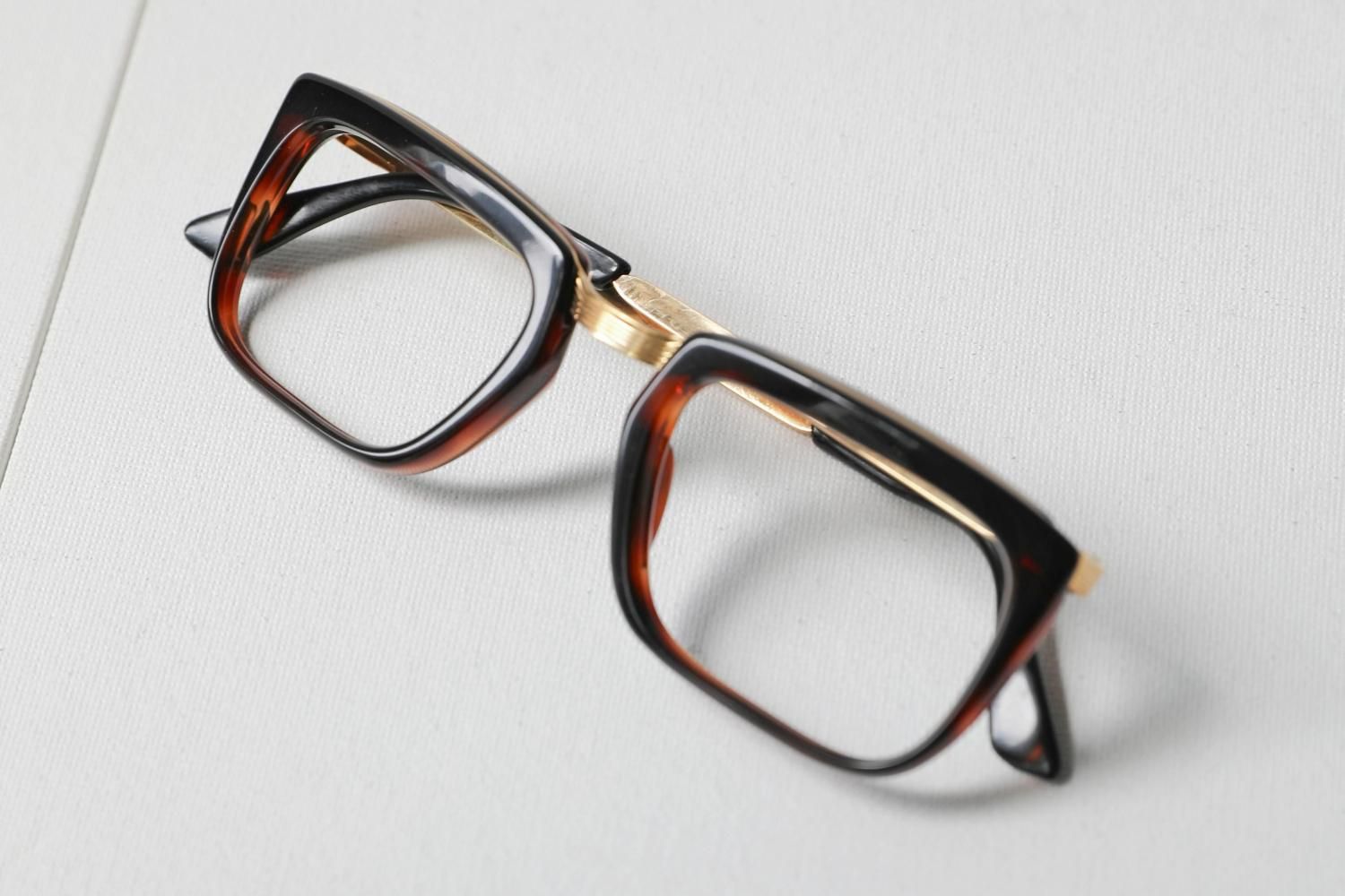 この「MANAGER」もフランスやドイツのヴィンテージアイウェアで見られる「カールトン」というタイプのデザインが秀逸。メタル部分はGOLD FILLED(金張り)の仕様で今のメッキでは出せない味わい深い光沢感が特徴です。