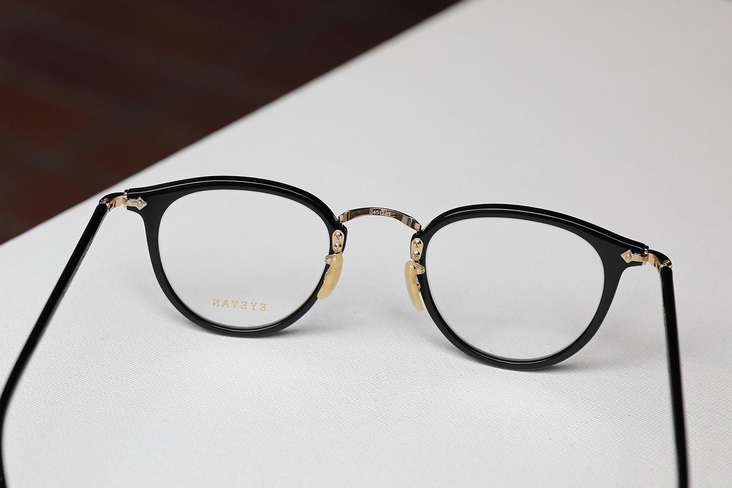 フロントは30年代のアメリカンヴィンテージの上リムがややフラットなパントシェイプをEYEVANらしいデザインに仕上げたもの。