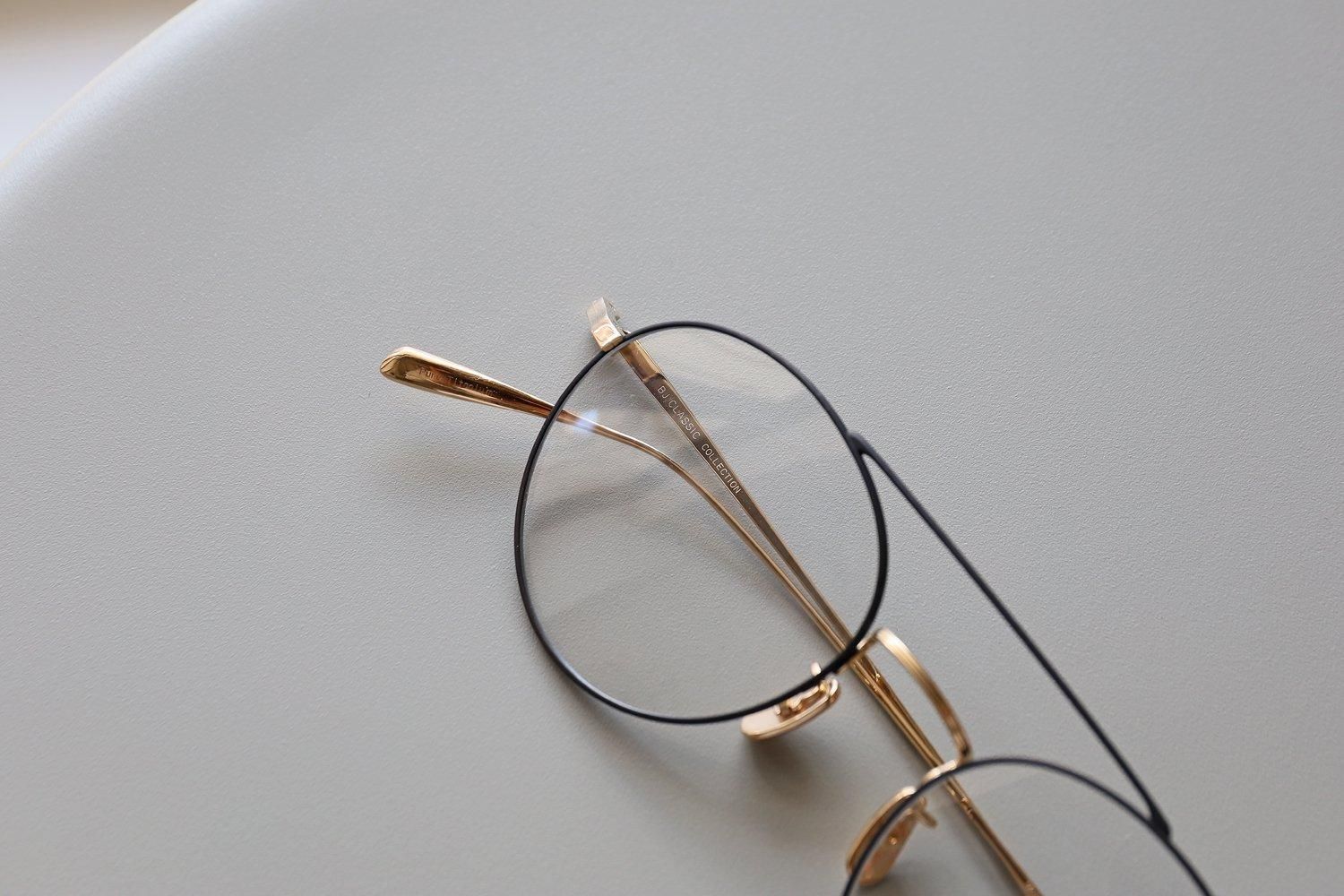 ダブルブリッジと細身のチタン素材が、洗練された印象に。