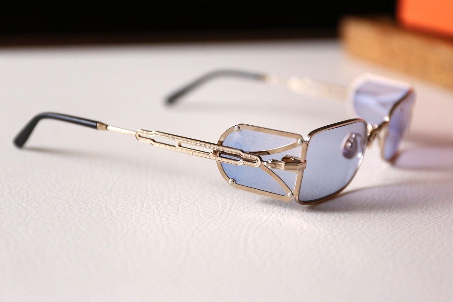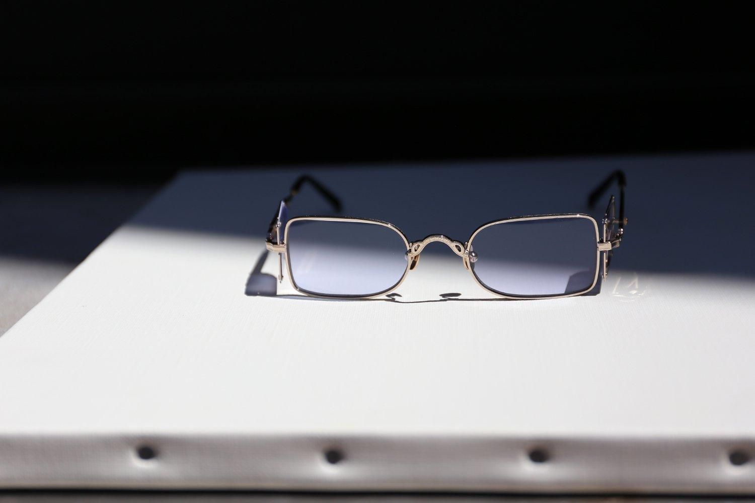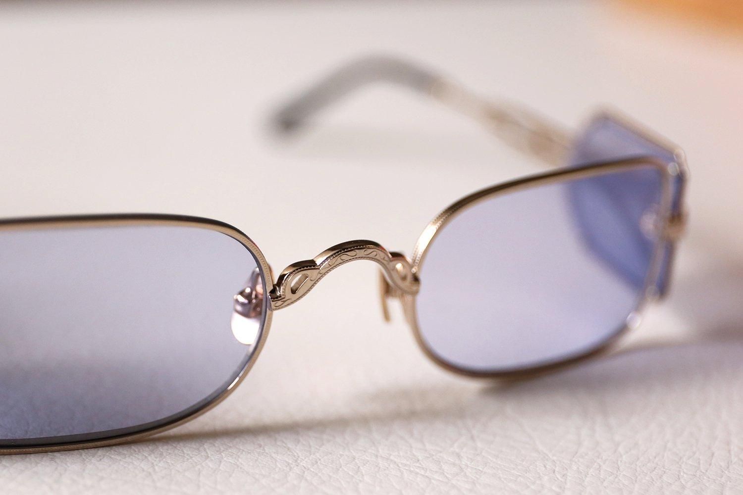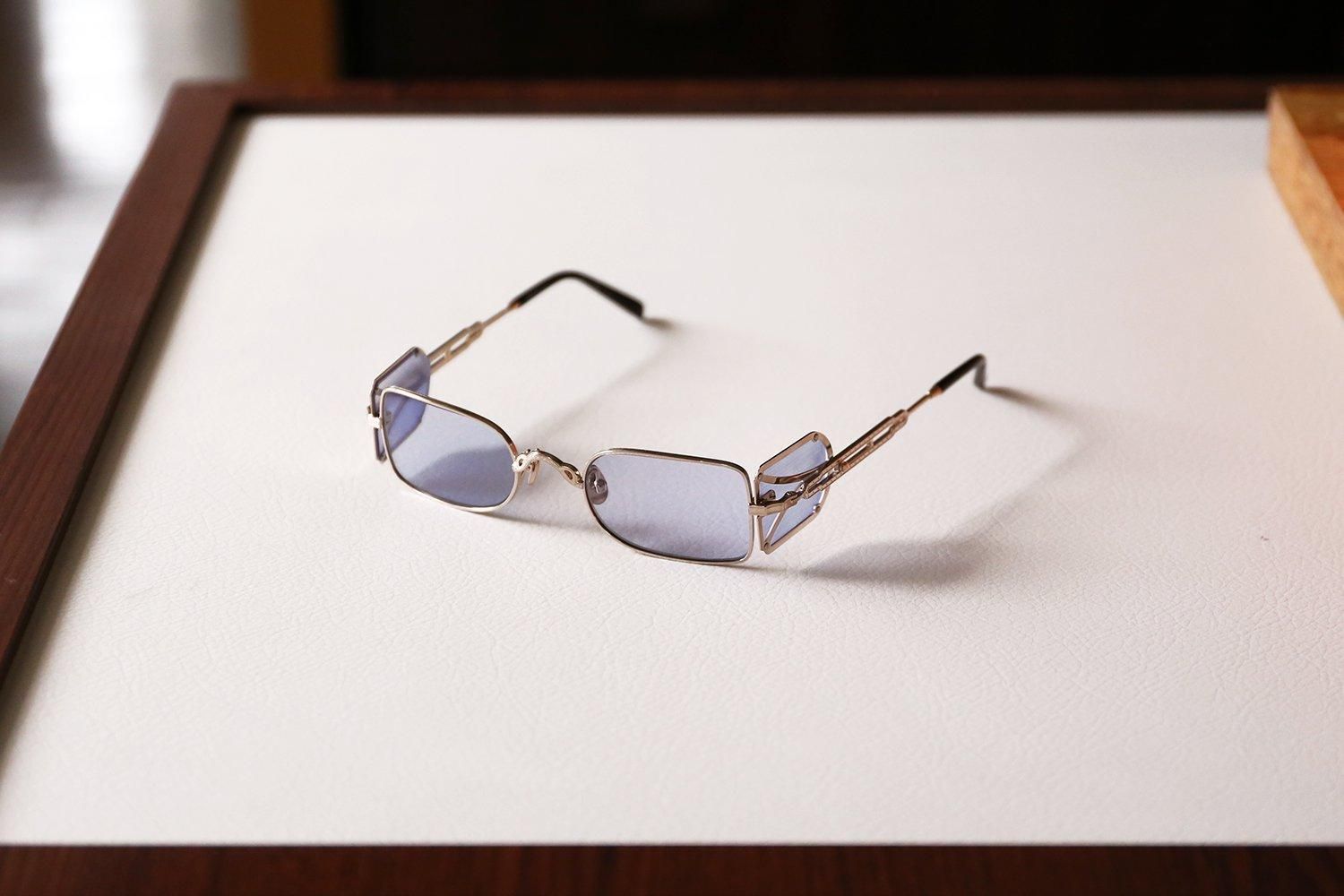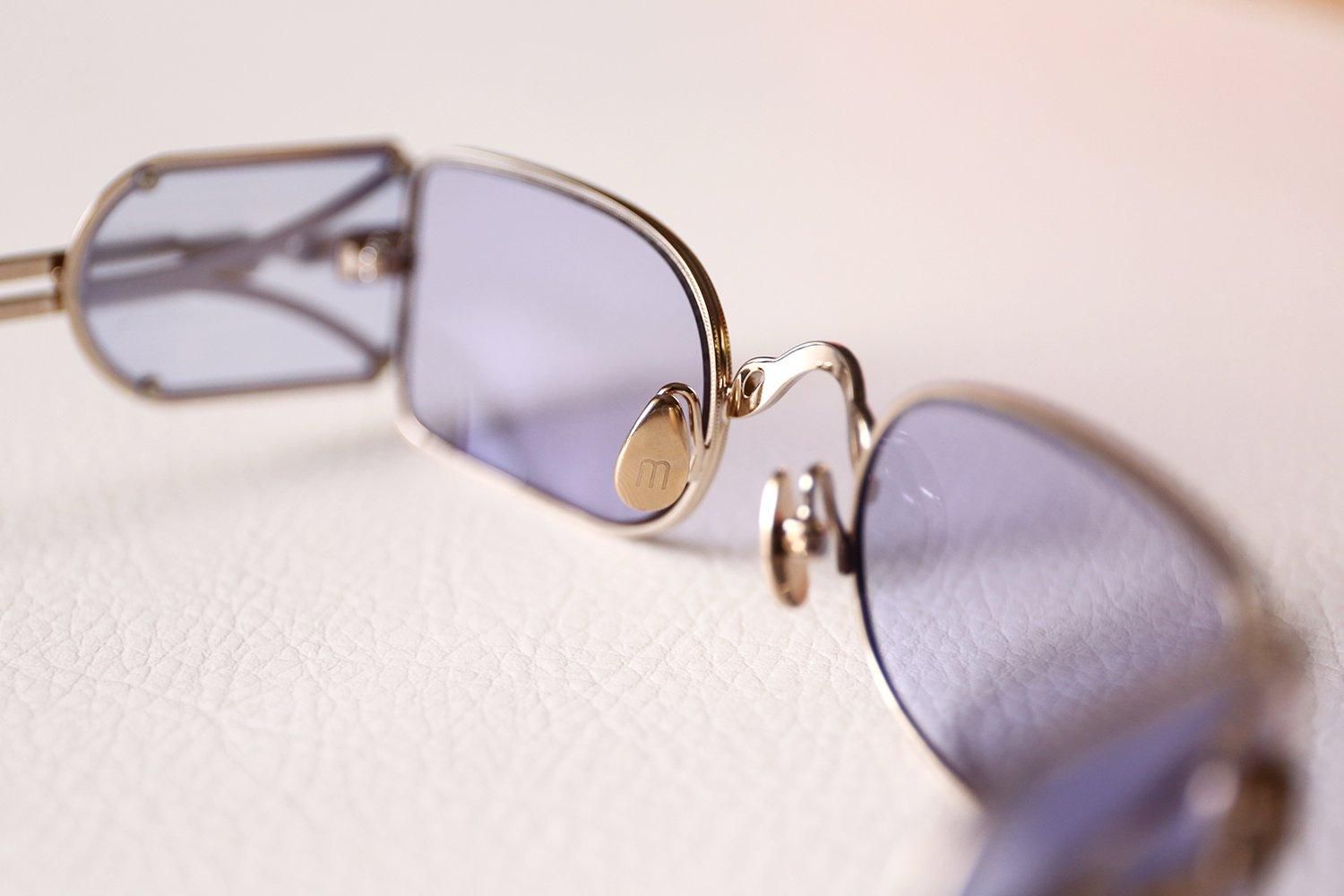 縦幅の狭い「ブレッドシェイプ」が特徴的なライトカラーサングラス。