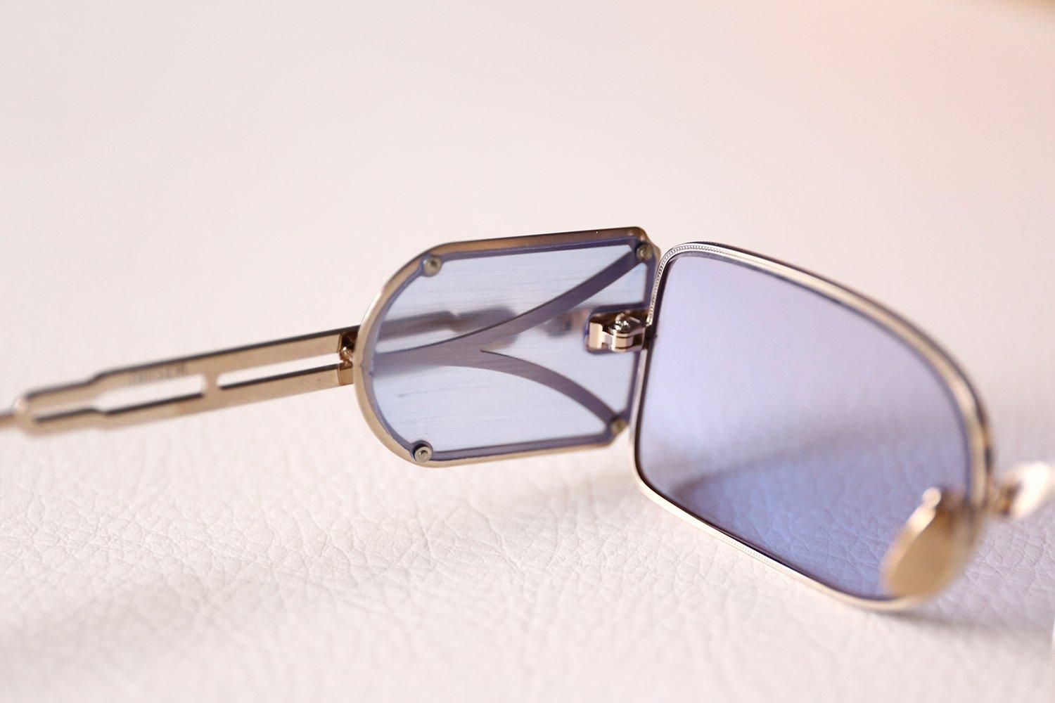 両サイドにはメッシュシールドが付いており、ヘアラインのかかったのアセテート生地とレンズカラーの同調率が非常に高く、無骨すぎない自然な仕上がりとなっています。