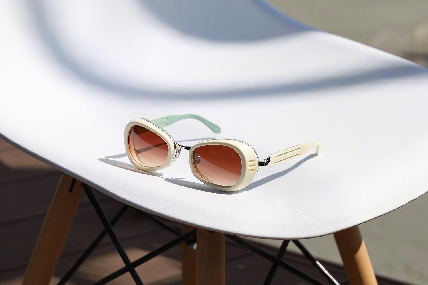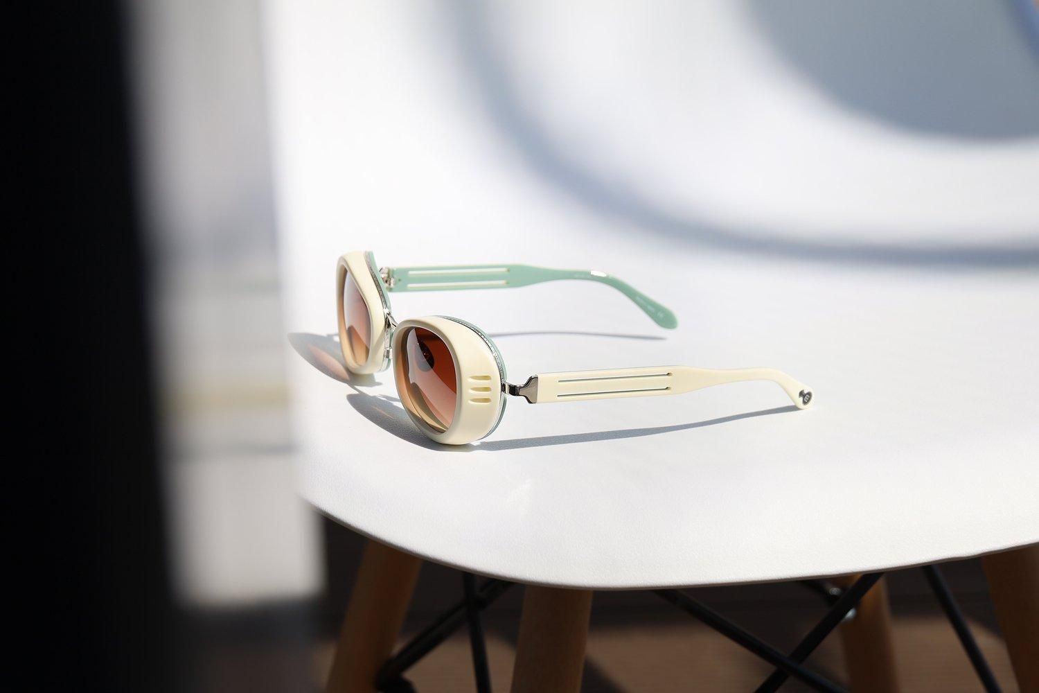 オーバルデザインのレンズが、ユニークなシルエットを魅せる。