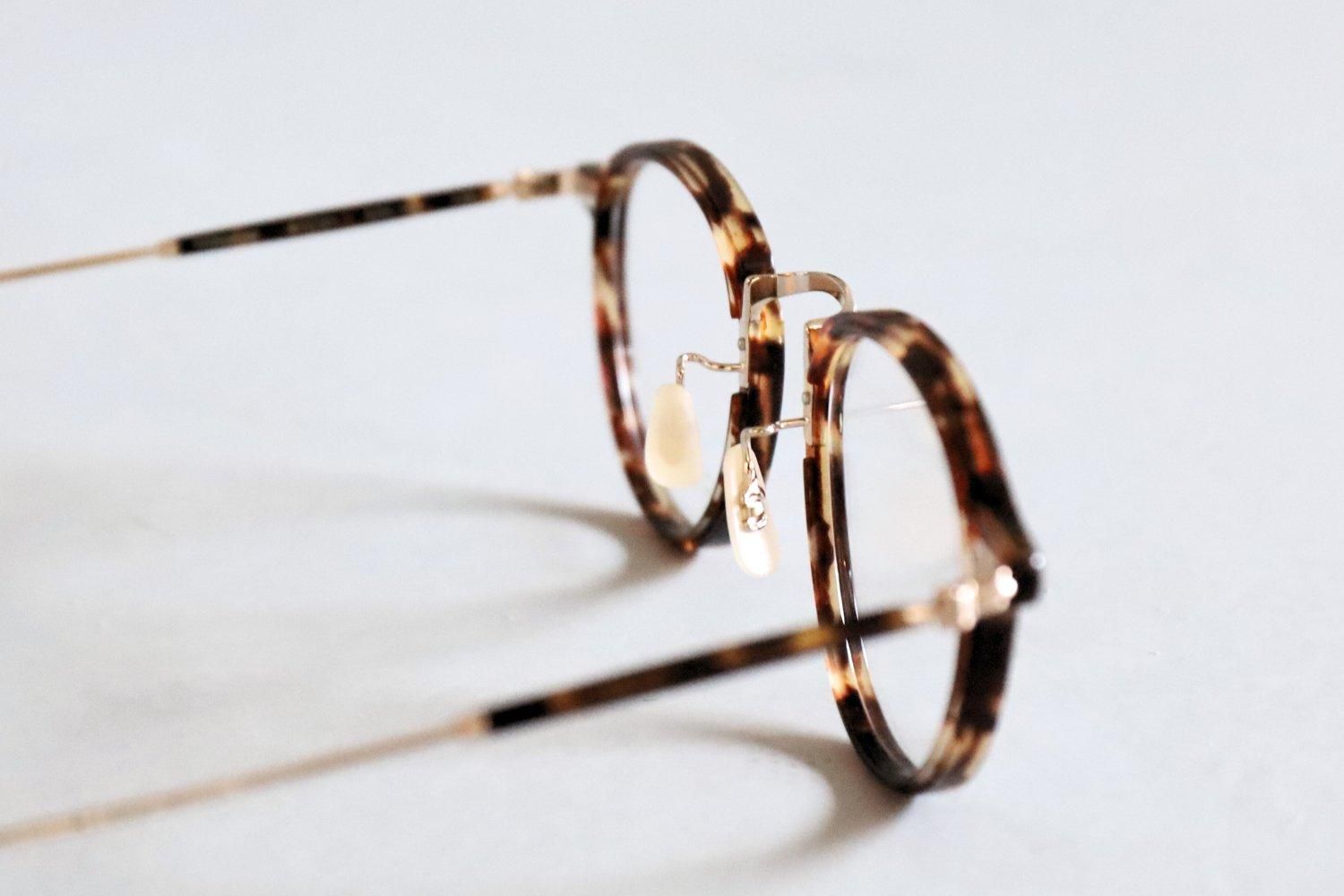 テンプルの樹脂装飾やメタルブリッジの彫金など、細部の造形にもこだわった正統派のクラシックスタイルです。カジュアルにもフォーマルにも合わせやすい眼鏡に仕上がりました。