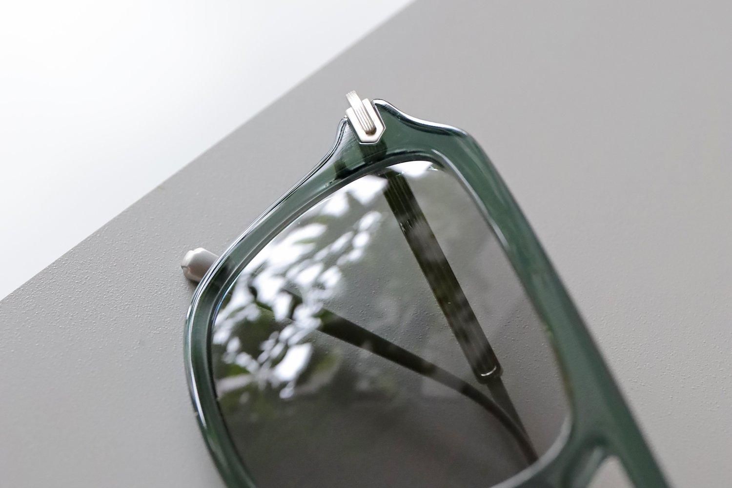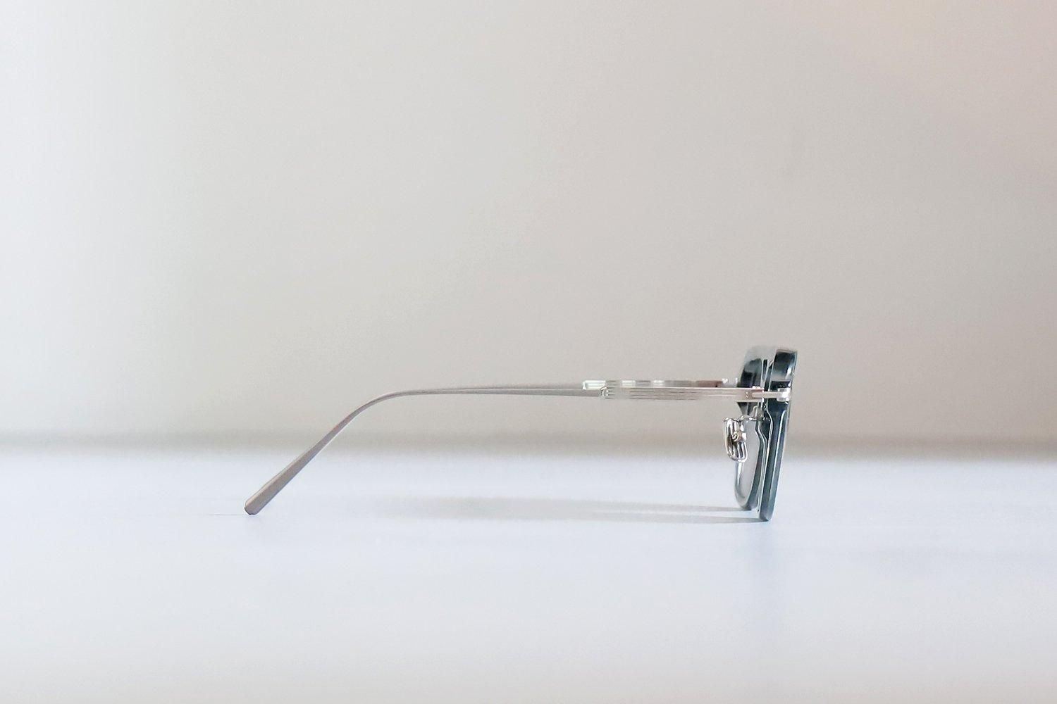 カジュアル感のあるアセテート製プラスティックをフロントに施し、かけ心地を左右するサイドのテンプル部分には弾性のあるベータチタン材を施した。パッドやサイドには堅実さが垣間見えるオリジナルのリブデザインで意匠面にも拘りを演出している。