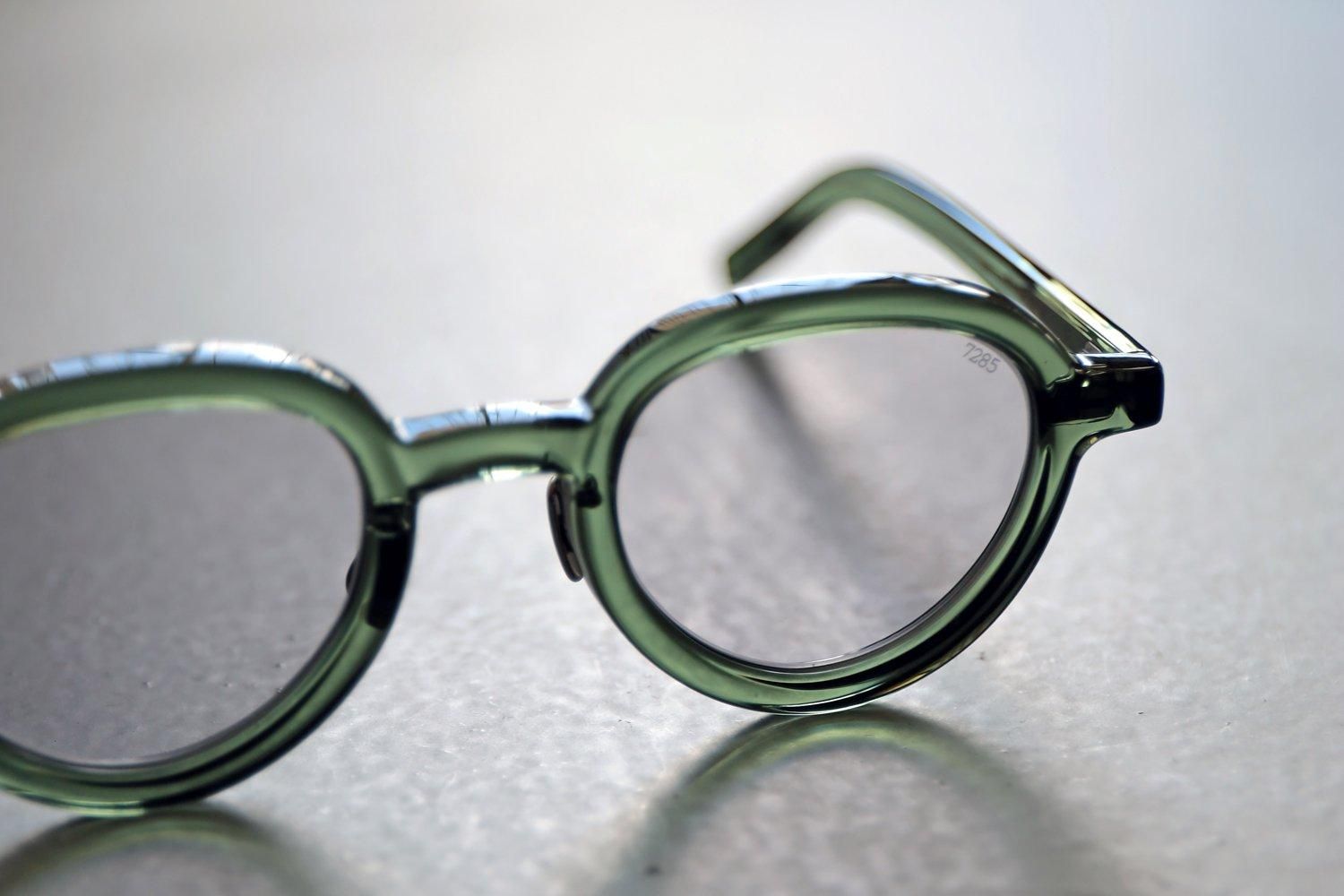 サングラスは色味の調合を金属の粒子などを混ぜ合わせて調色し、溶解後に一枚ずつ成形して製作するガラス製オリジナルのフラットレンズが採用されている。