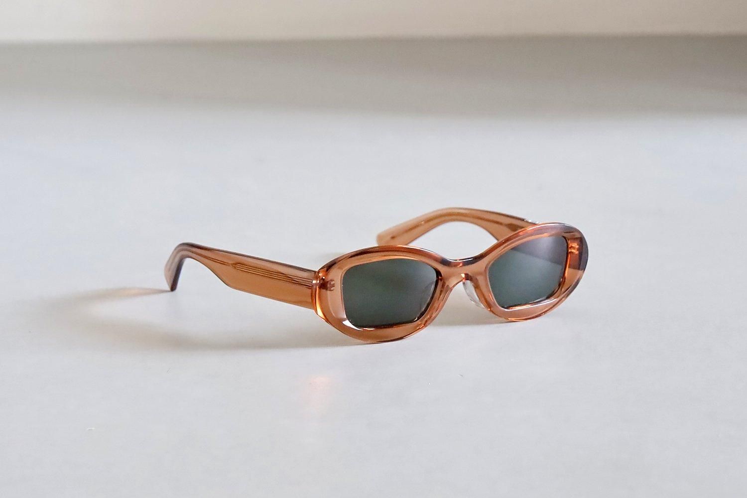 オーバルようなフォックス型のような独特のレンズシェイプ。