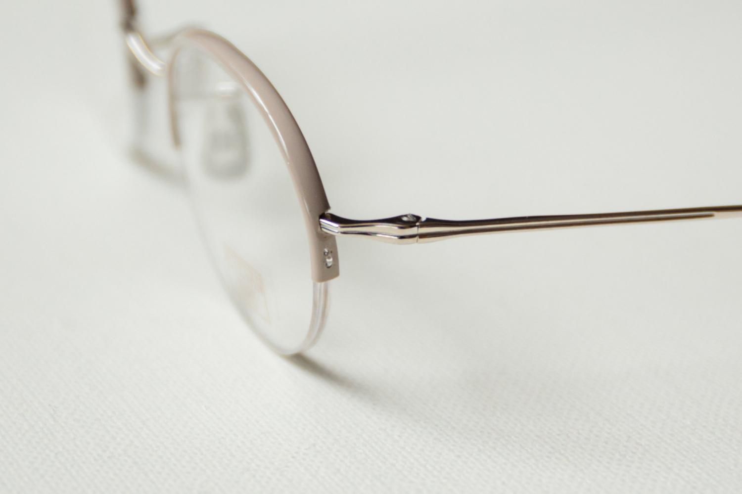 90年代に散見されたナロー(narrow)なオーバル型がイメージソース。 メタルナイロールで上部はセル巻きでカバーした。
