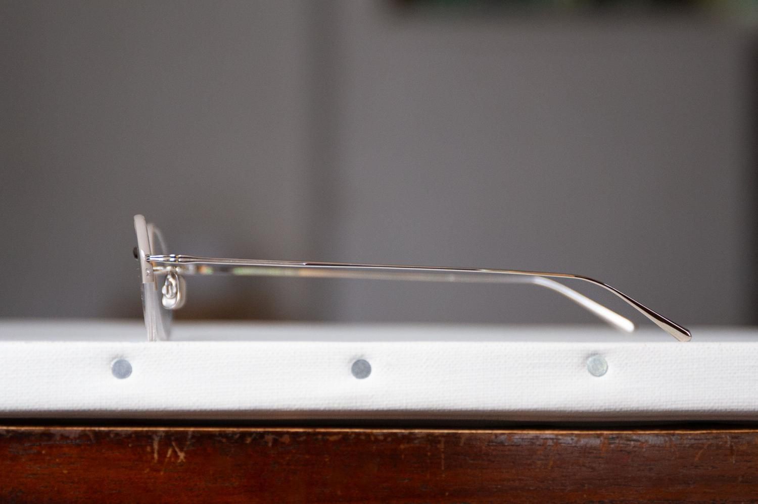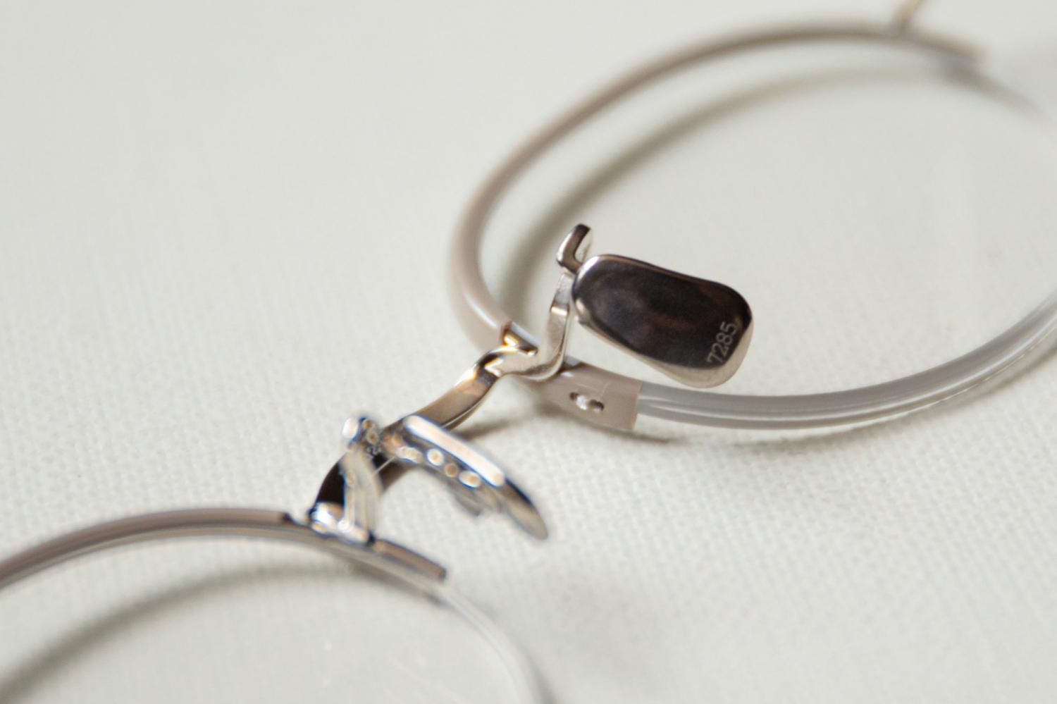 ナイロールリムとセル巻きを同寸法にし、穴位置を合わせたこの構造はミニマルなルックスに対して非常に難易度が高い製法。 クラシックとモードの間を浮遊するような7285らしい、あくまで抑制が効いたオリジナリティを表現できた。