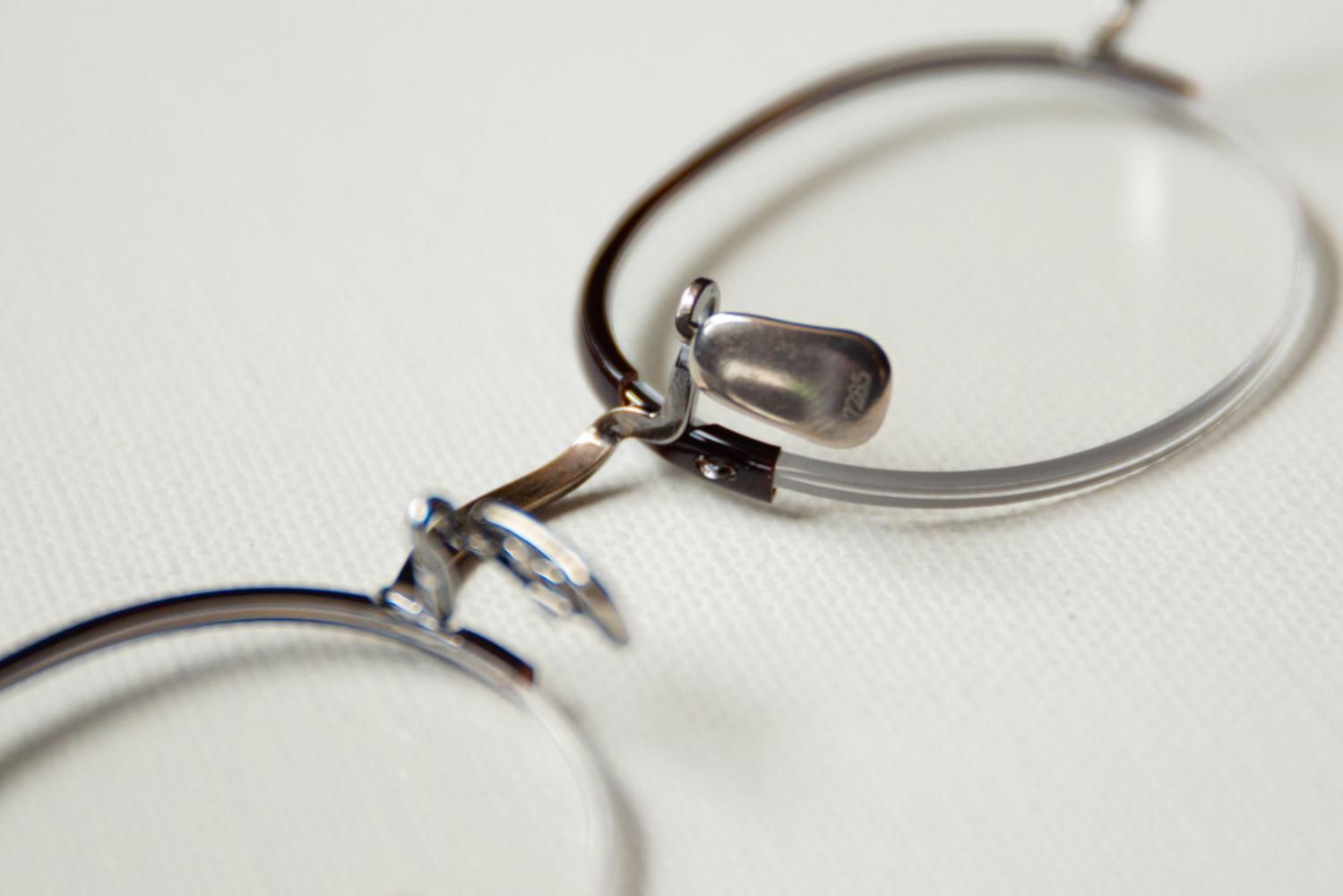 90年代に散見されたナロー(narrow)なオーバル型がイメージソース。 メタルナイロールで上部はセル巻きでカバーした。