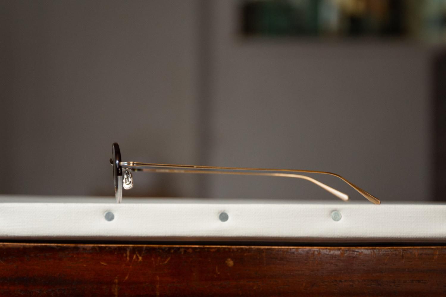 ナイロールリムとセル巻きを同寸法にし、穴位置を合わせたこの構造はミニマルなルックスに対して非常に難易度が高い製法。 クラシックとモードの間を浮遊するような7285らしい、あくまで抑制が効いたオリジナリティを表現できた。