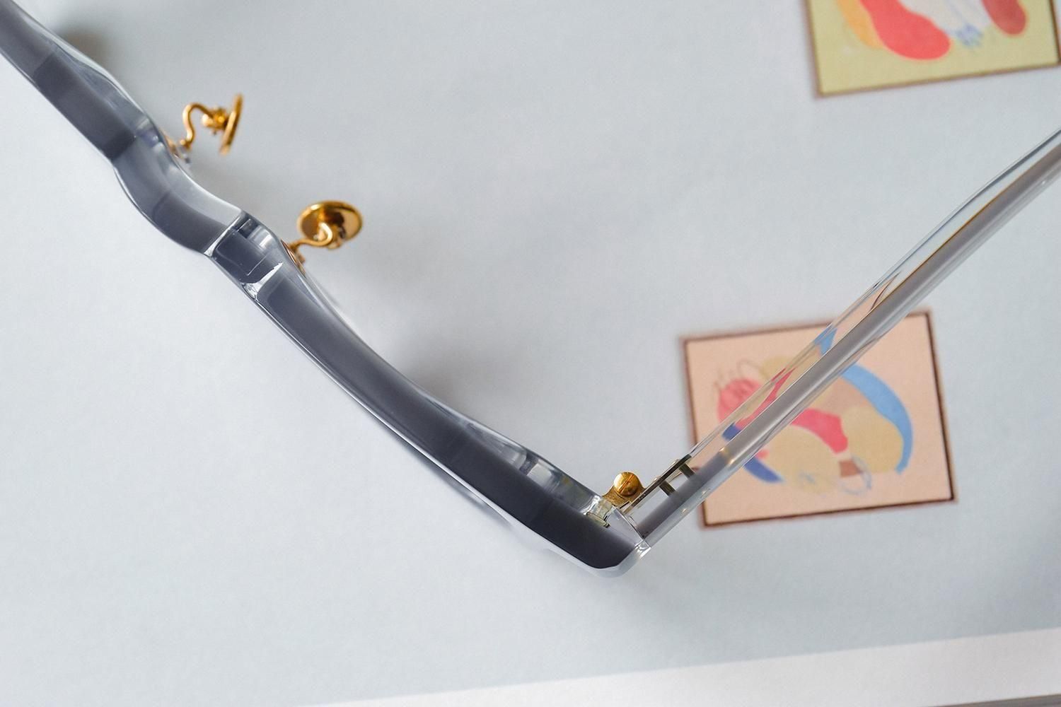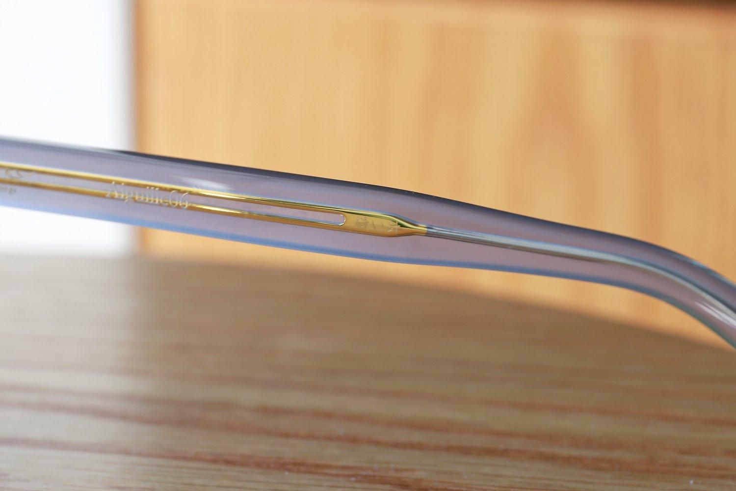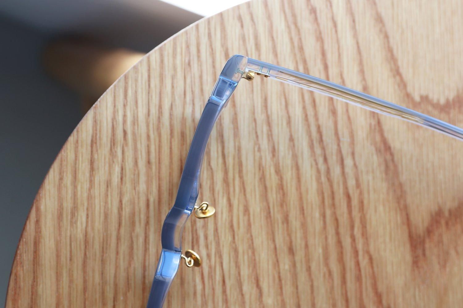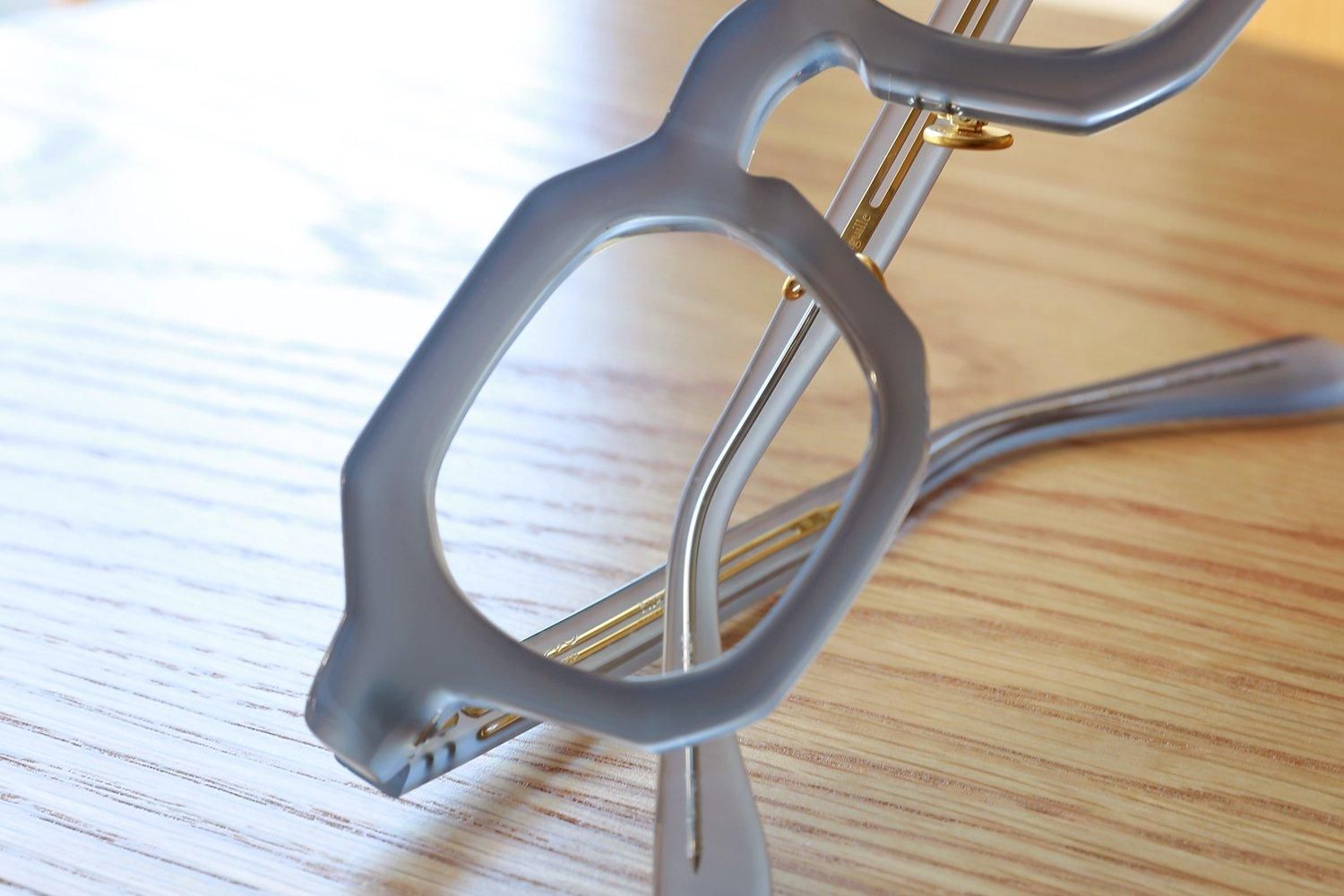 さらに、「縫い針」をイメージしたテンプル芯や、「ボタン」をイメージしたゴールドカラーの丸い鼻パッドなど、細部にもこだわり抜いたデザインが施されています。これらのディテールが、全体のデザインに統一感をもたらし、Filtonらしい上品さと洗練さを際立たせています。