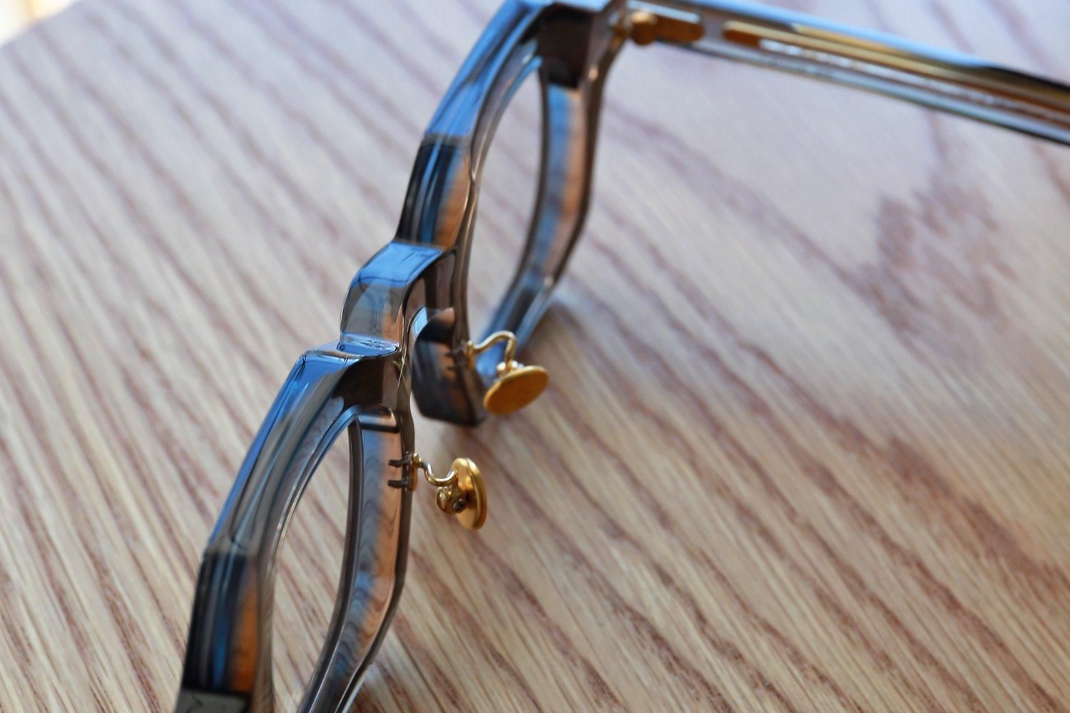さらに、「縫い針」をイメージしたテンプル芯や、「ボタン」をイメージしたゴールドカラーの丸い鼻パッドなど、細部にもこだわり抜いたデザインが施されています。これらのディテールが、全体のデザインに統一感をもたらし、Filtonらしい上品さと洗練さを際立たせています。