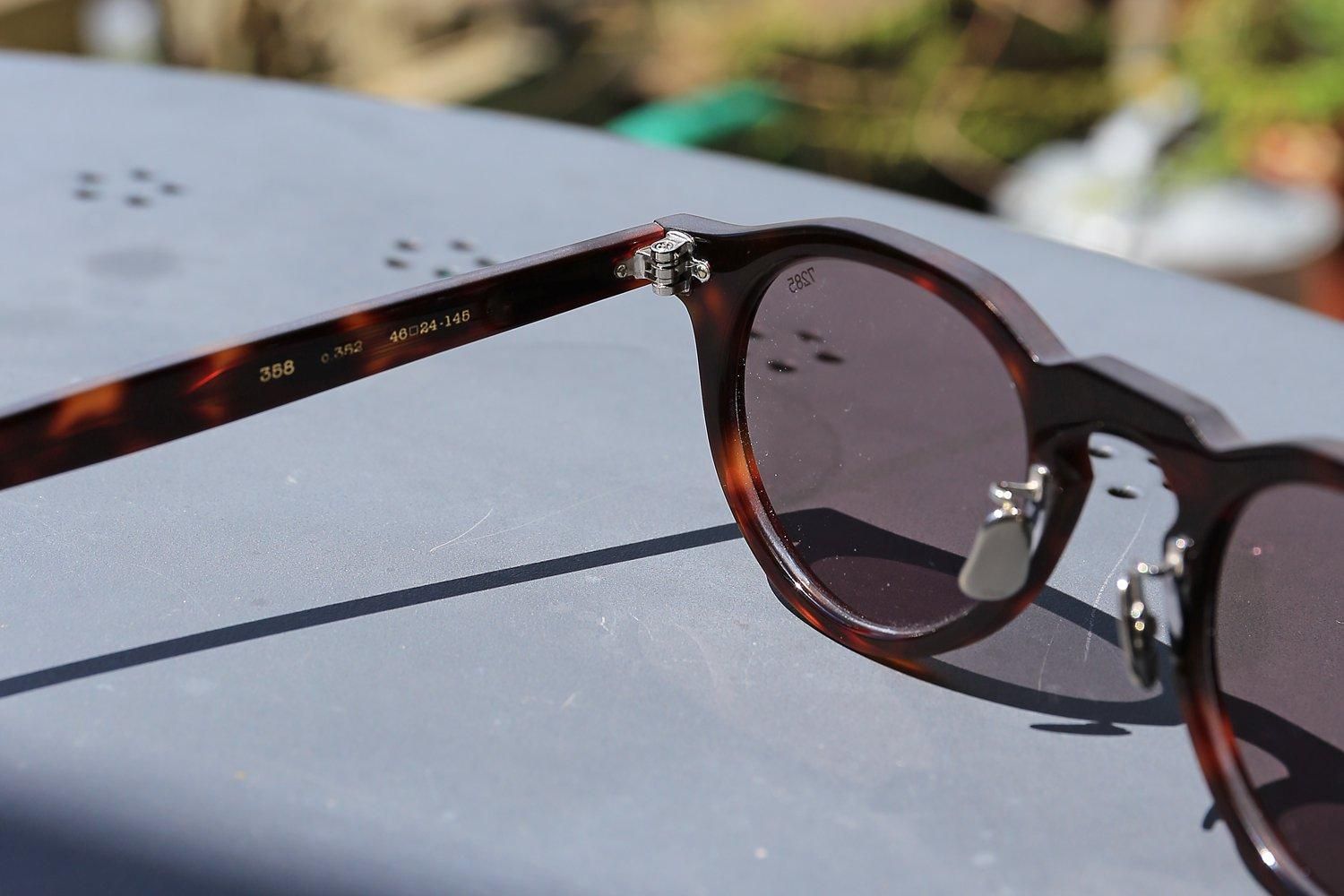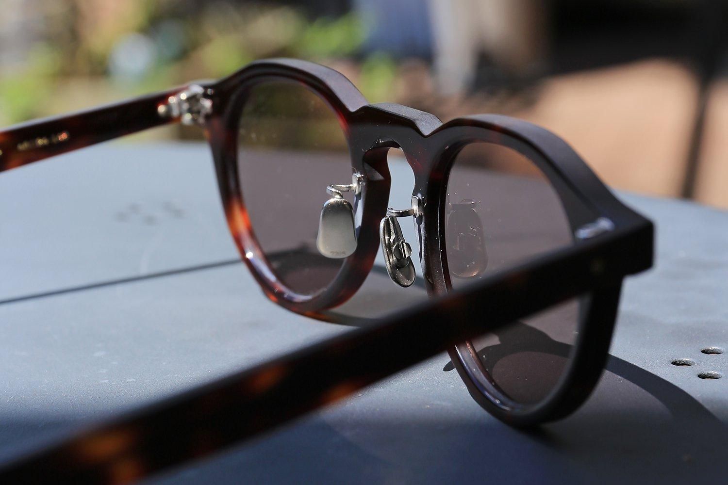 ディテールはオリジナルの丁番(1PIN仕様)に10金PINを用いた特別な仕様。ヴィンテージにはない、今現在生きている人間達のアイデアと技術で作りあげたコンテンポラリーな名品がまた一つコレクションに加わった。サングラスは色味の調合からメーカーと開発したガラス製オリジナルの「アイヴァンカーブレンズ」を採用。