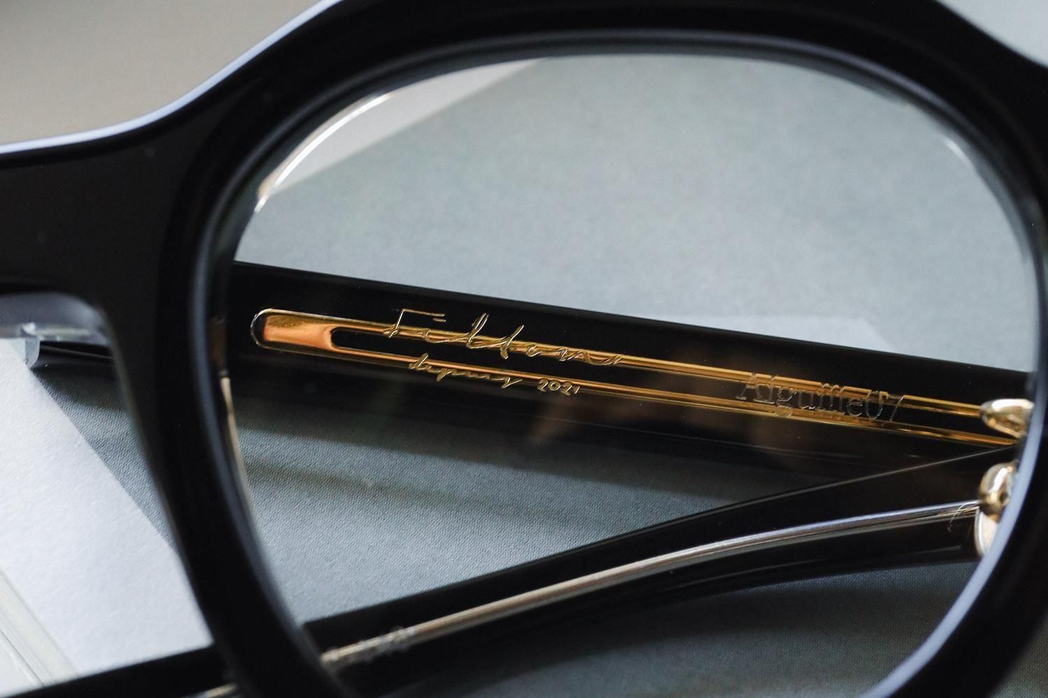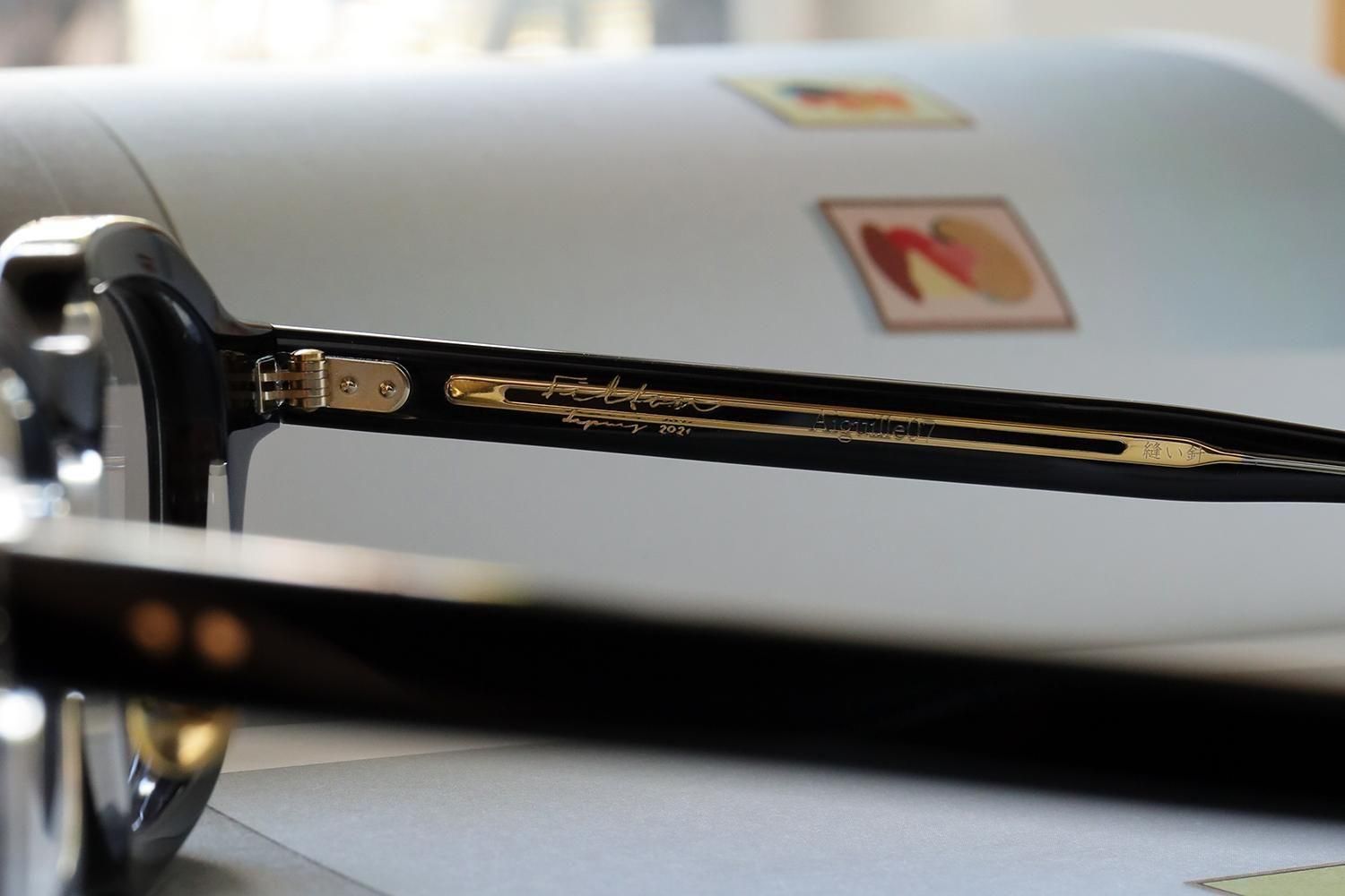 さらに、「縫い針」をイメージしたテンプル芯や、「ボタン」をイメージしたゴールドカラーの丸い鼻パッドなど、細部にもこだわり抜いたデザインが施されています。これらのディテールが、全体のデザインに統一感をもたらし、Filtonらしい上品さと洗練さを際立たせています。