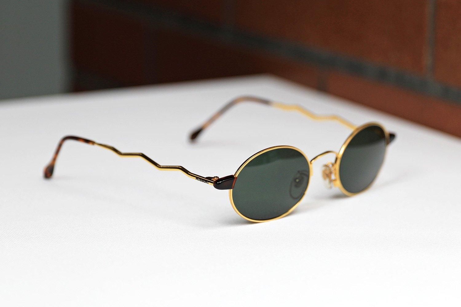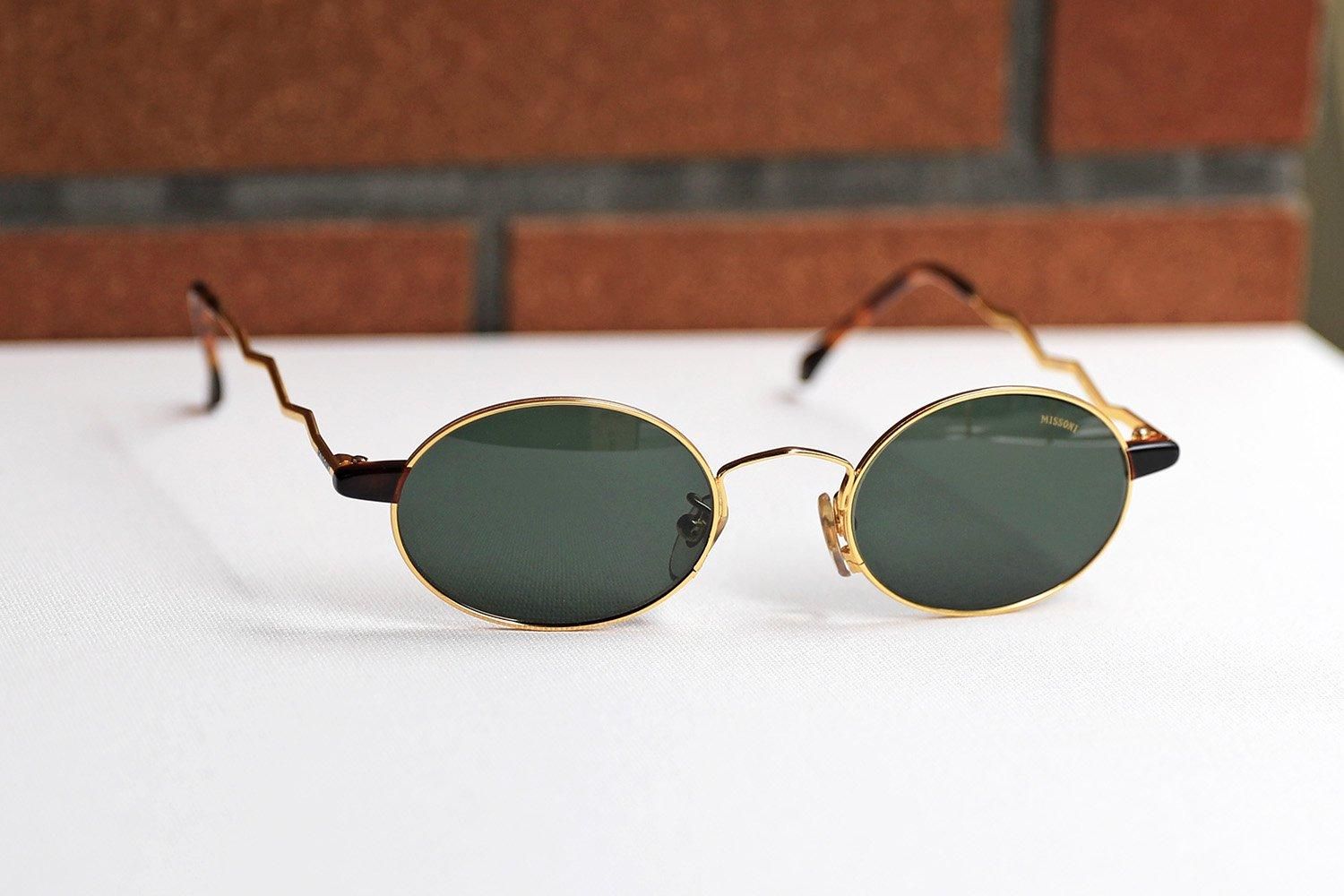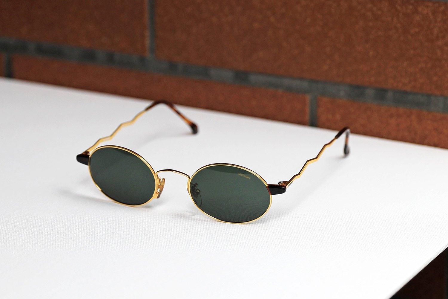 ゴールドを基調としたフレームにグリーンレンズを搭載したサングラスモデル"M399/S"