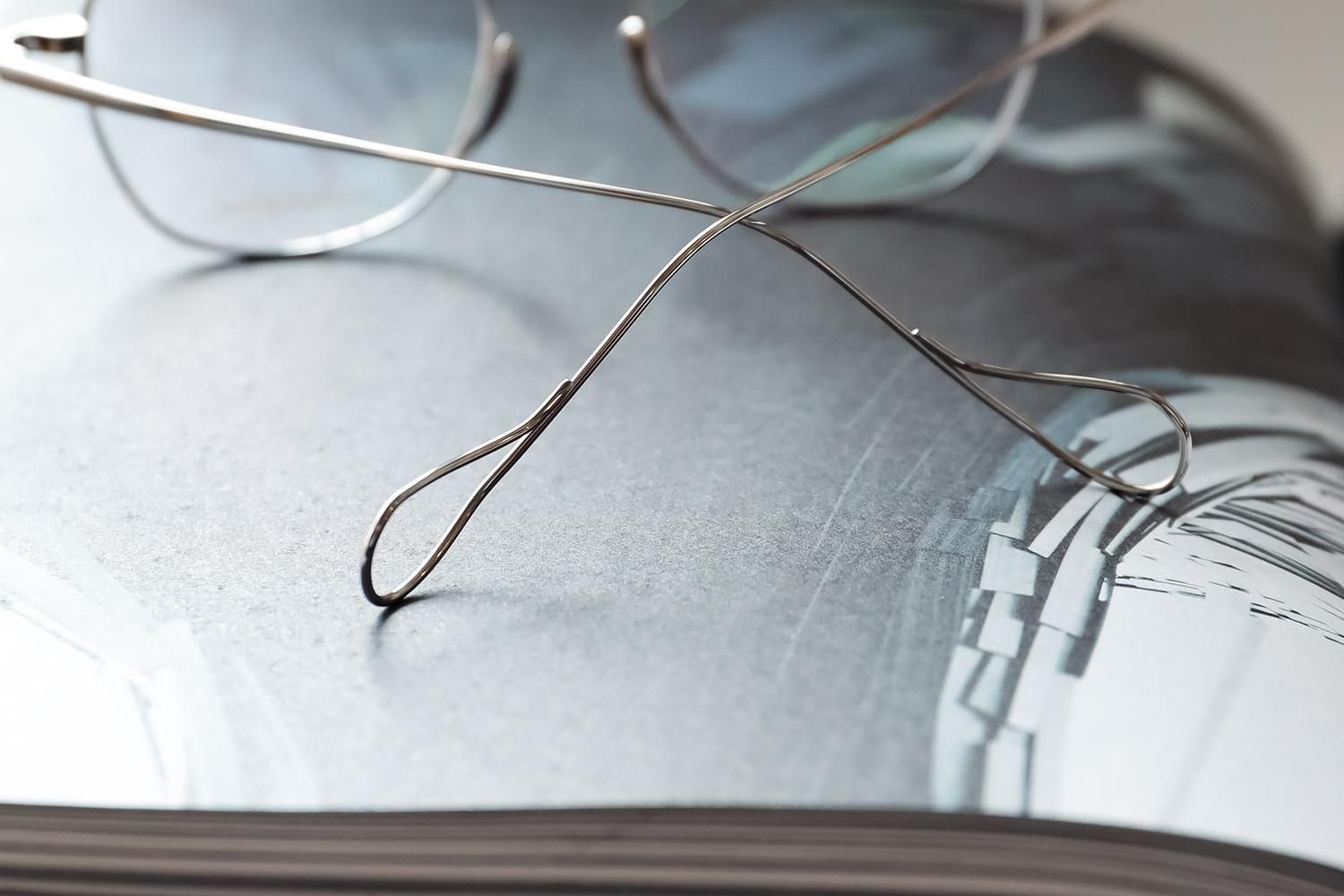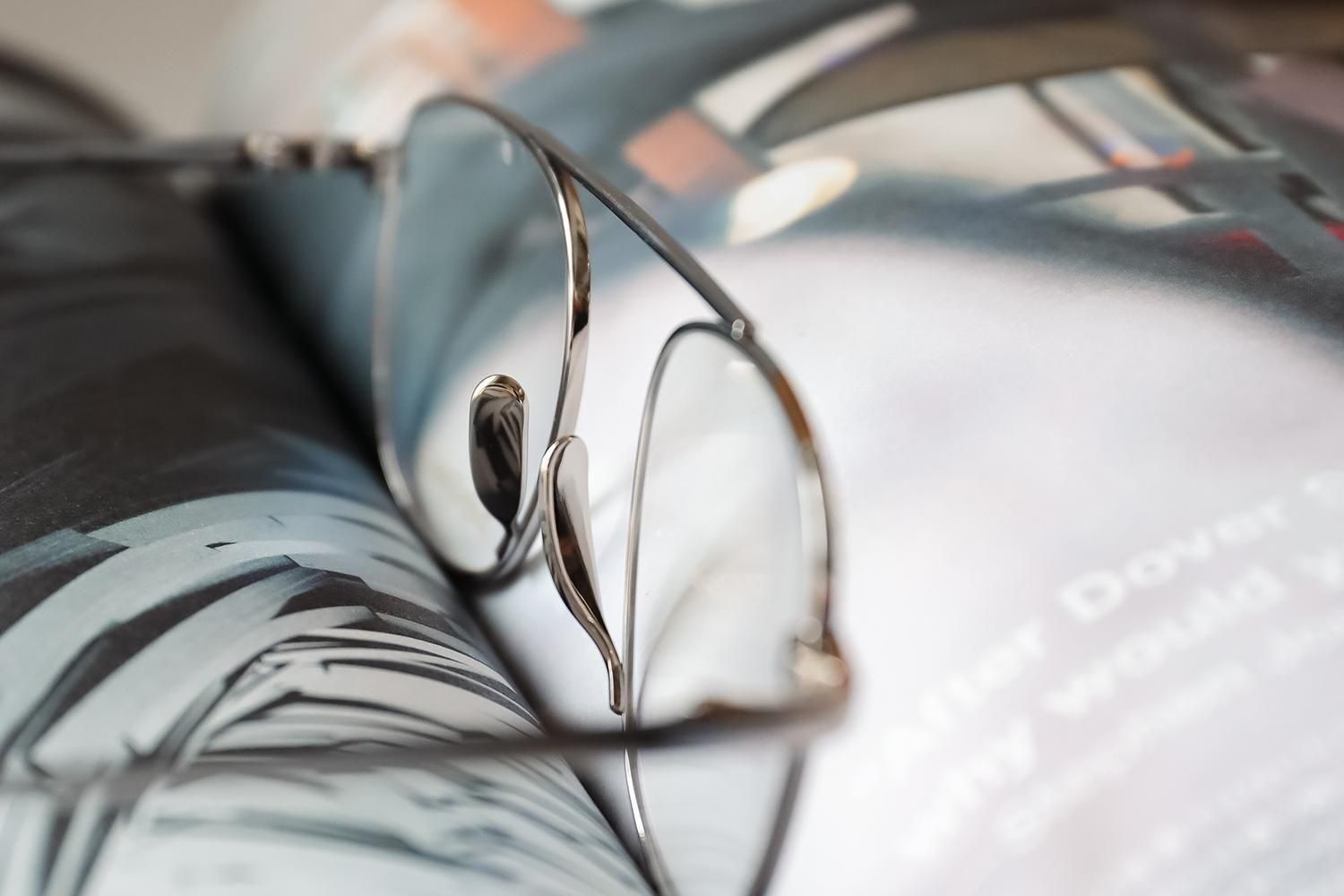 ノーズパットには、古いヨーロッパの眼鏡にみられたアンダースローなメタルパットを使用。