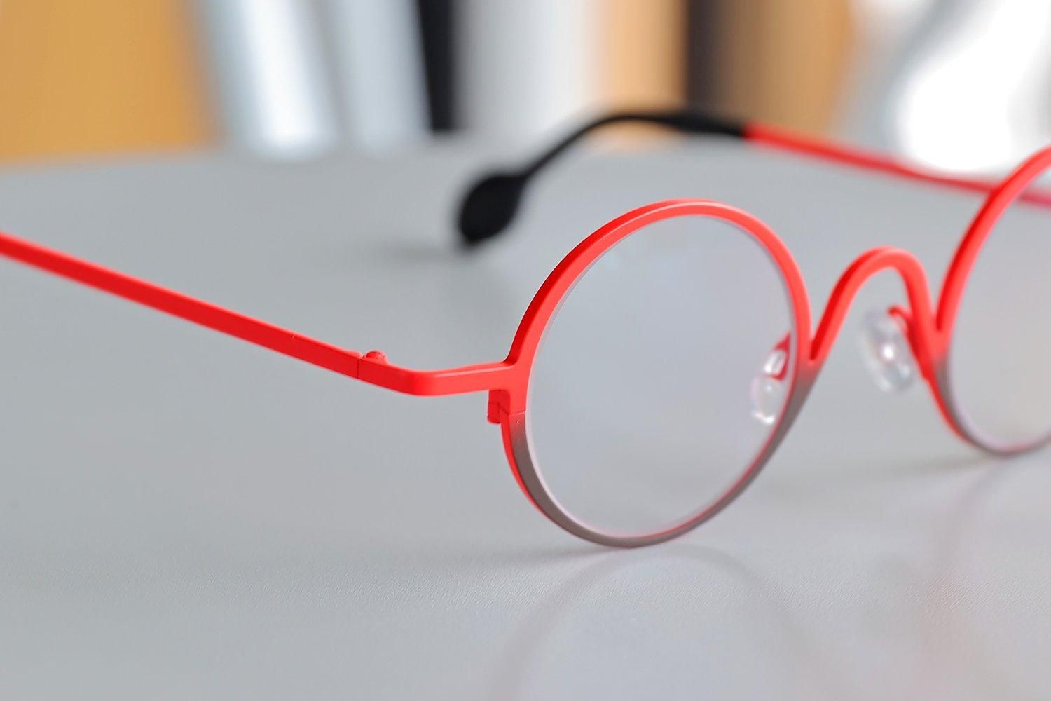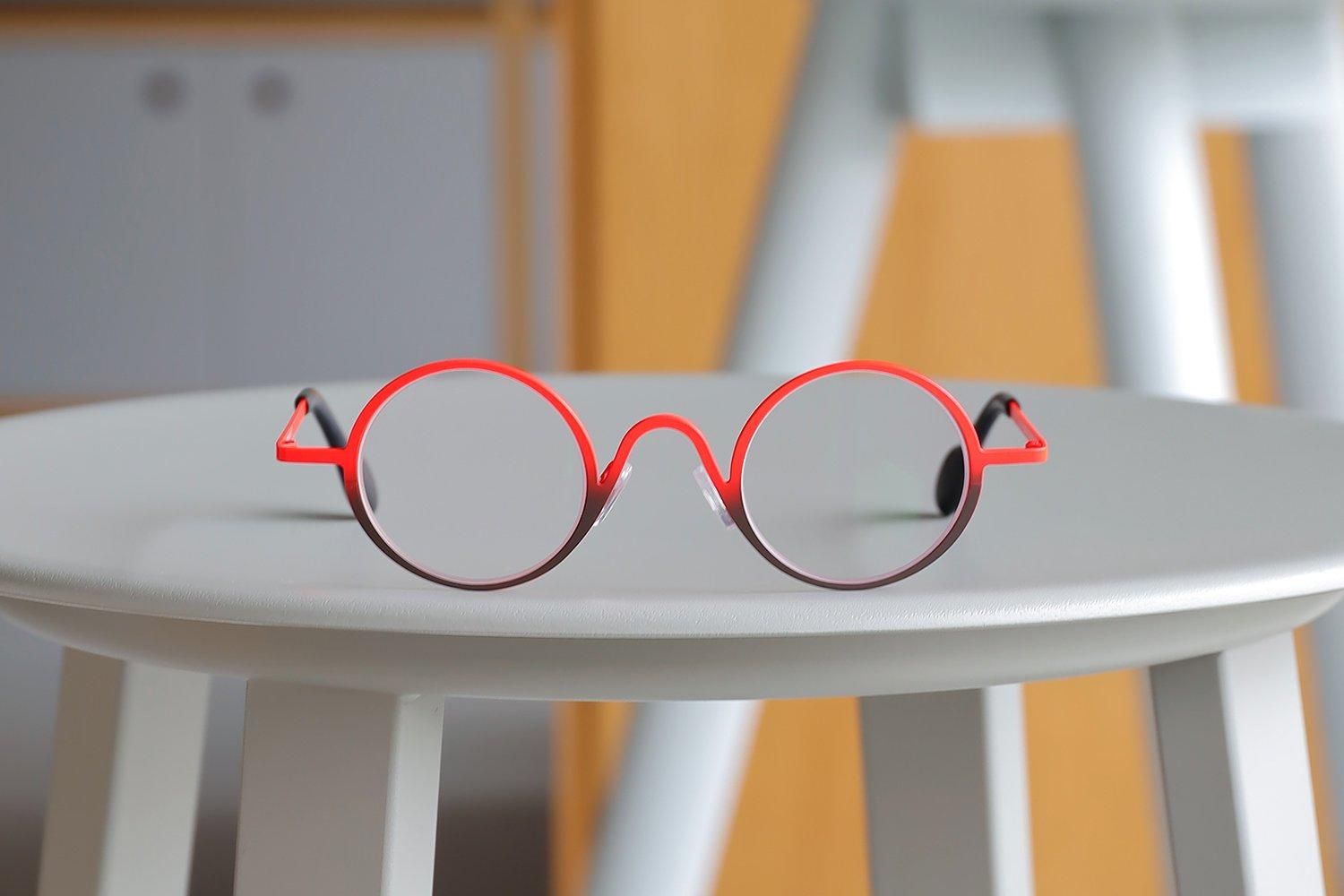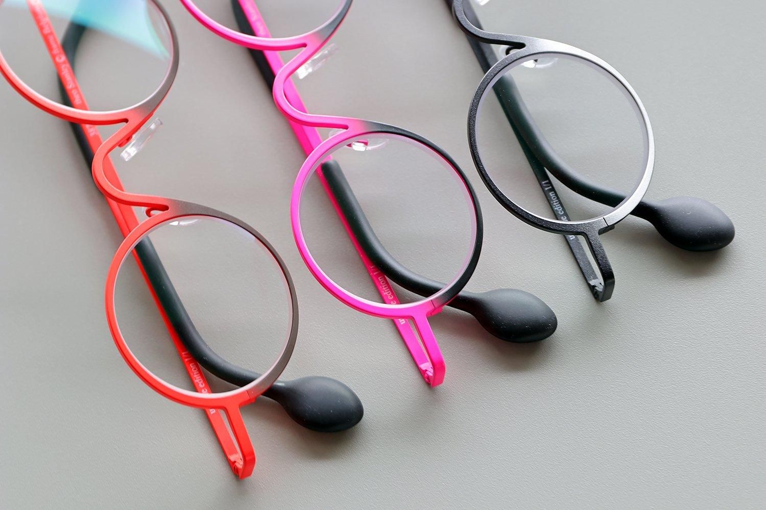 このフレームの一番の特徴は、レンズの上下で切り替わるカラーリング。鮮やかな色合いが上下で異なることで、見る角度や光の加減で表情が変わり、見る人を飽きさせません。赤、ピンク、そして黒の3色展開が、それぞれの個性を引き立てるポイントになっており、どのカラーも日常のスタイルにユニークなアクセントを添えてくれます。