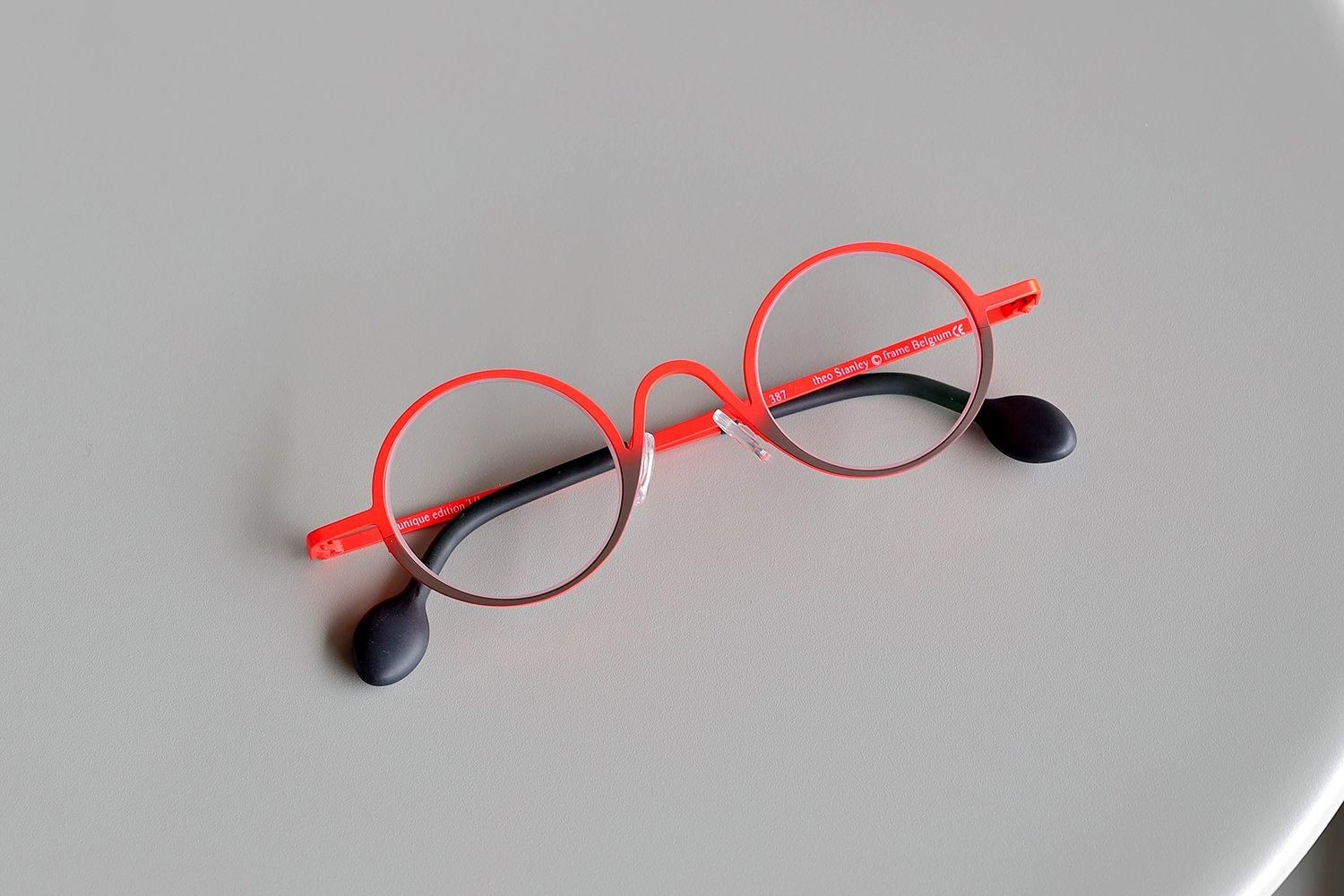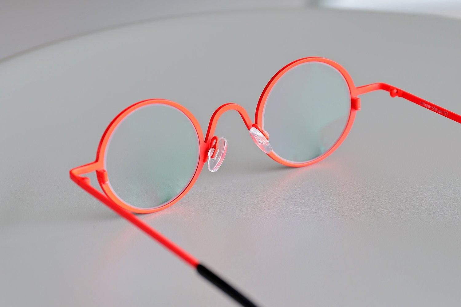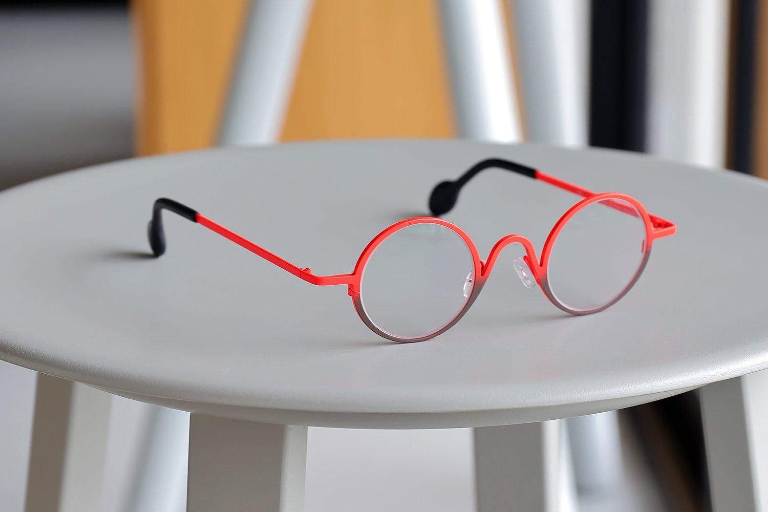 このフレームの一番の特徴は、レンズの上下で切り替わるカラーリング。鮮やかな色合いが上下で異なることで、見る角度や光の加減で表情が変わり、見る人を飽きさせません。赤、ピンク、そして黒の3色展開が、それぞれの個性を引き立てるポイントになっており、どのカラーも日常のスタイルにユニークなアクセントを添えてくれます。