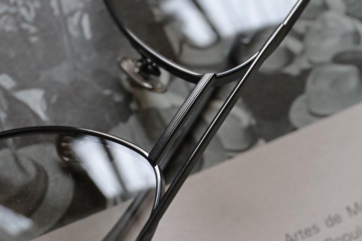 細部ではメタルフレームには珍しく、厚みのあるフロントには正面とサイドで