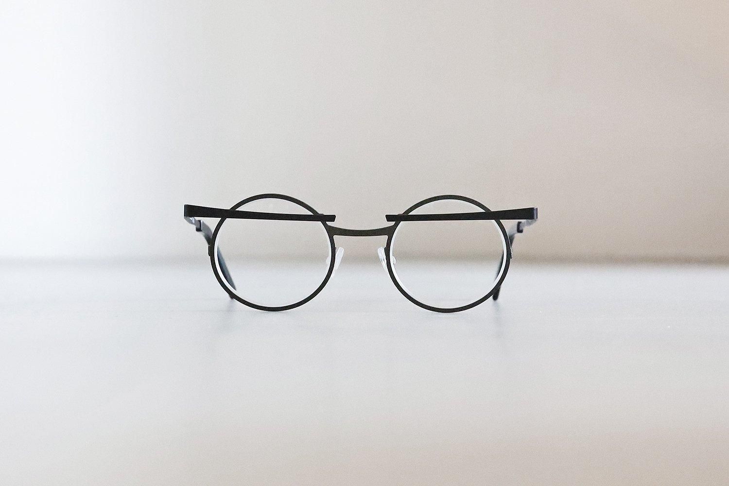 シンプルなラウンドのフレームは、顔立ちを柔らかく包み込むような印象を与える一方で、構築的な直線的なラインが個性と知性を引き立てます。