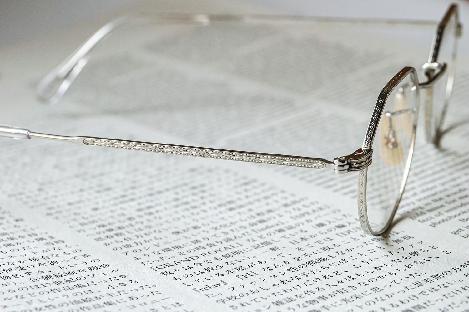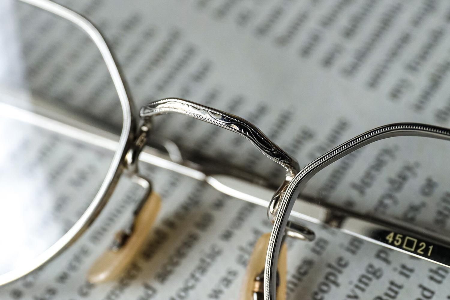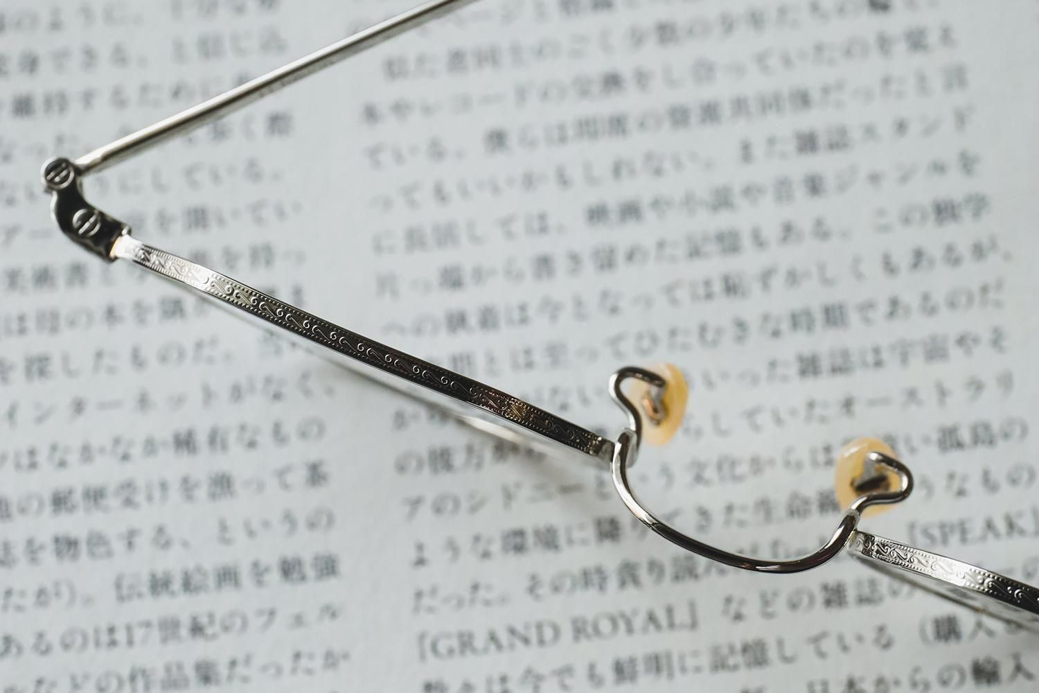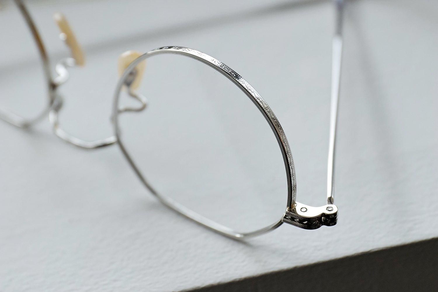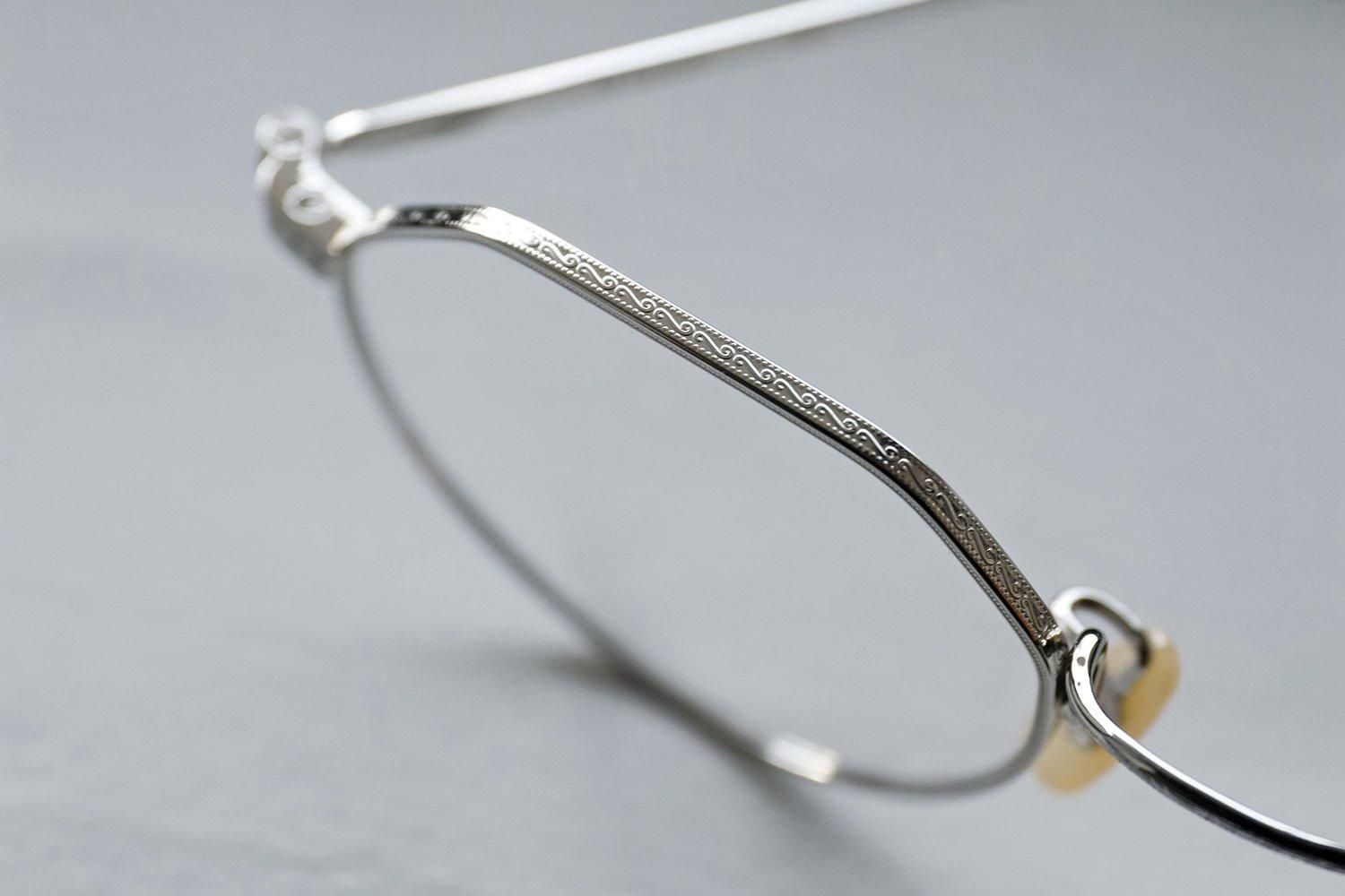 また、リムやブリッジ、テンプルには精密な彫金が施されており、細部までこだわり抜かれた仕上がりです。