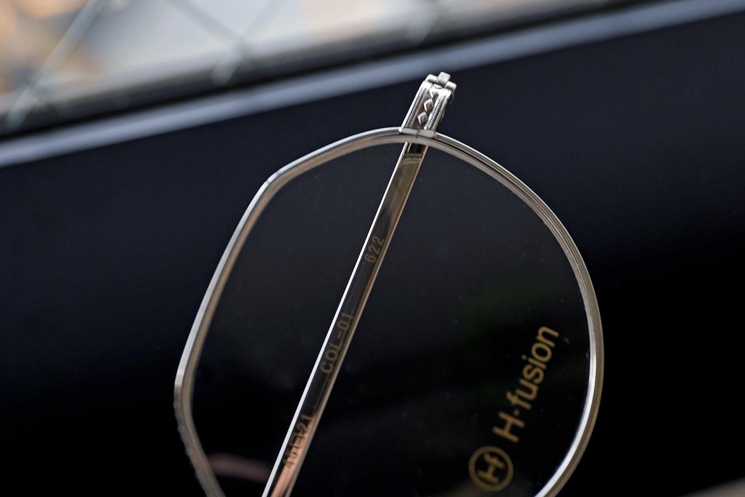 フレームには日本発祥の素材「サンプラチナ」を使用。1930年代に開発されたこの特別な合金は、シルバーに近い落ち着いた光沢を持ち、軽量かつ耐久性に優れています。