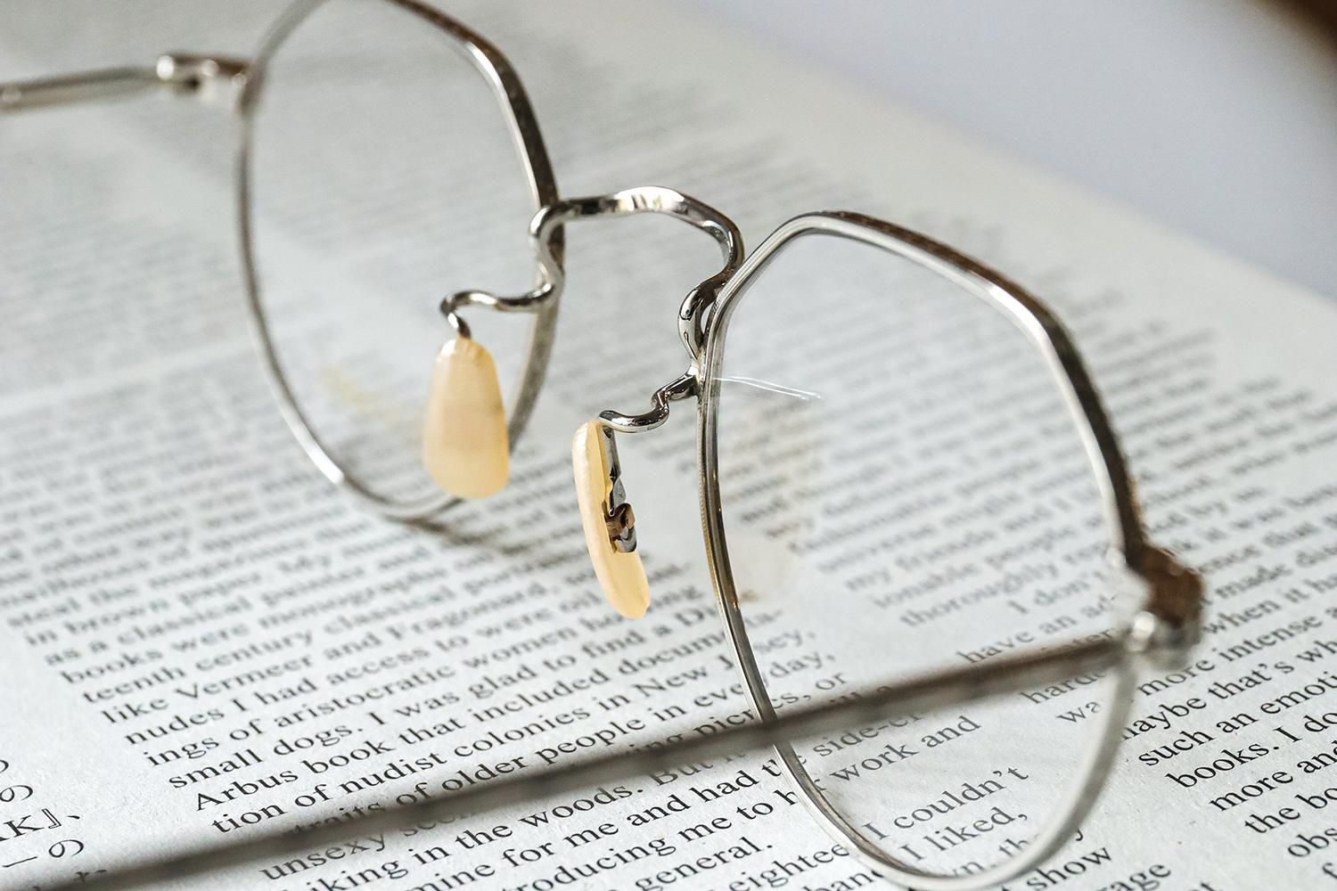ヴィンテージフレームに見受けられる「ベークライト調」のノーズパッドやクリアのテンプルエンドが、軽やかさと肌馴染みの良さをプラス。伝統的なクラウンパントゥデザインをベースに、日常にも特別なシーンにも取り入れやすく、さりげない個性を演出します。