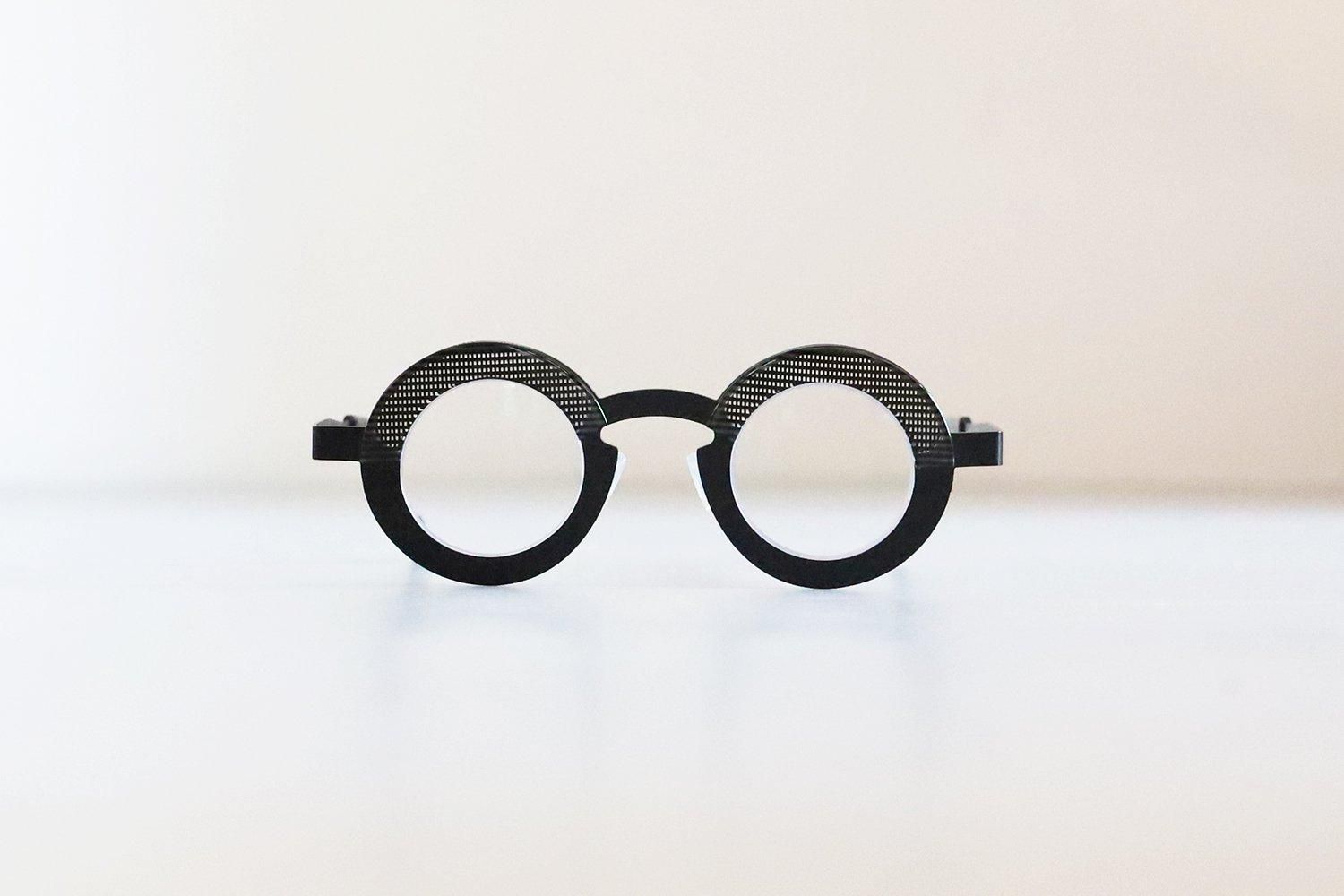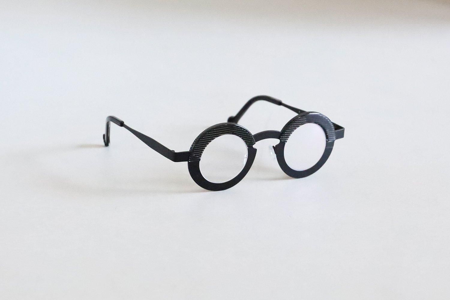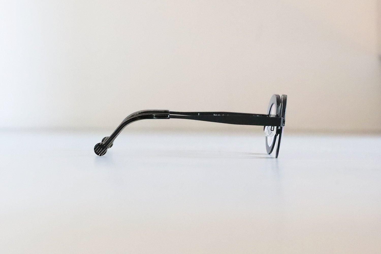 個性的なブローラインと丸みのあるレンズシェイプが印象的で、シンプルでありながら独自のアート性を感じさせるシリーズです。
