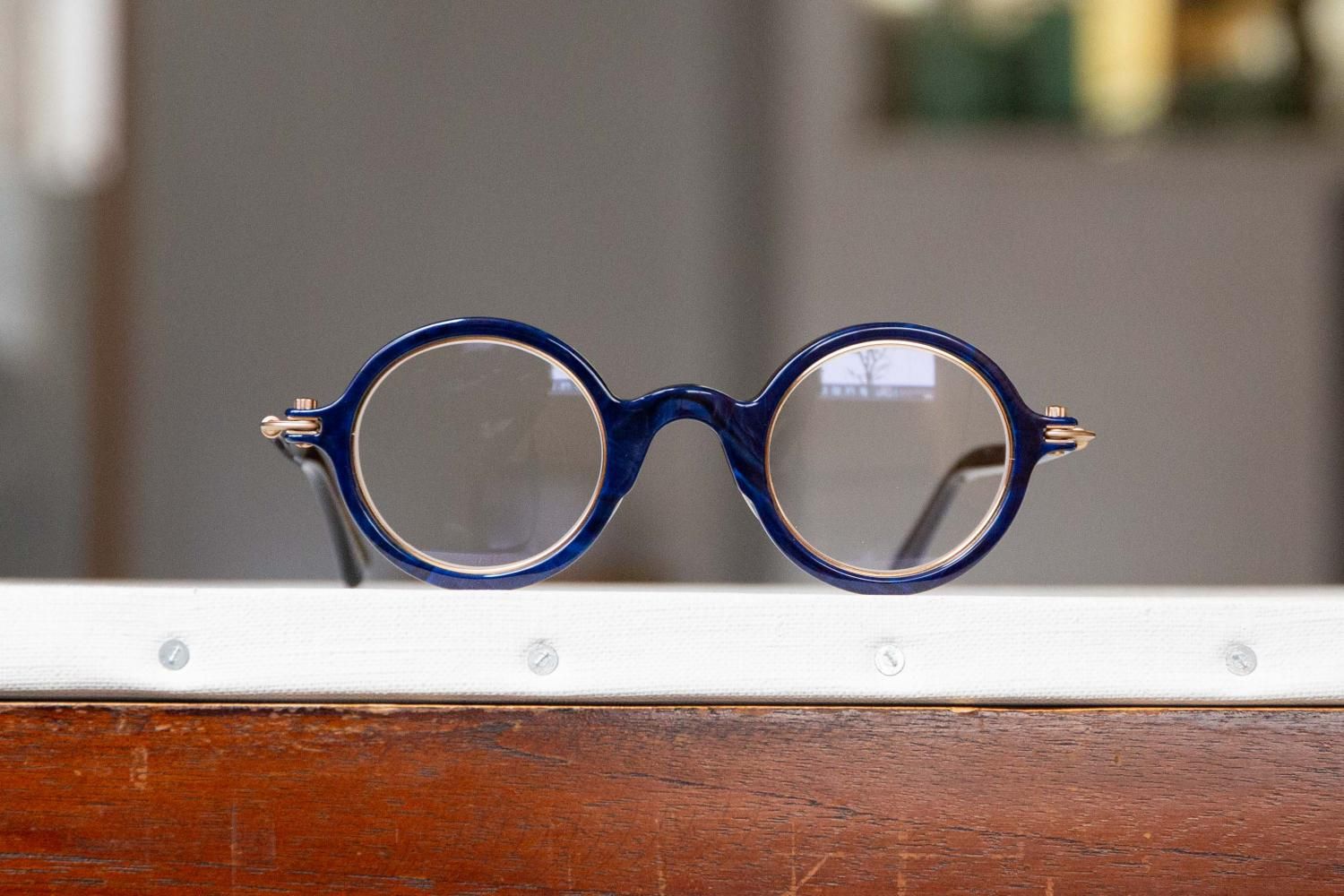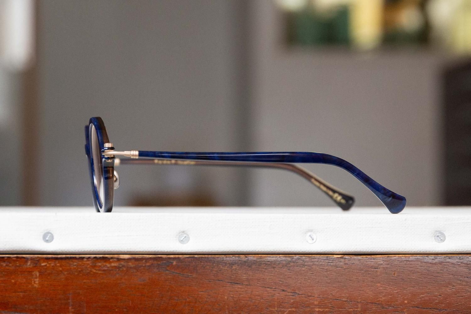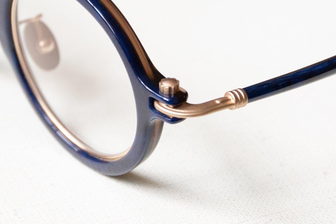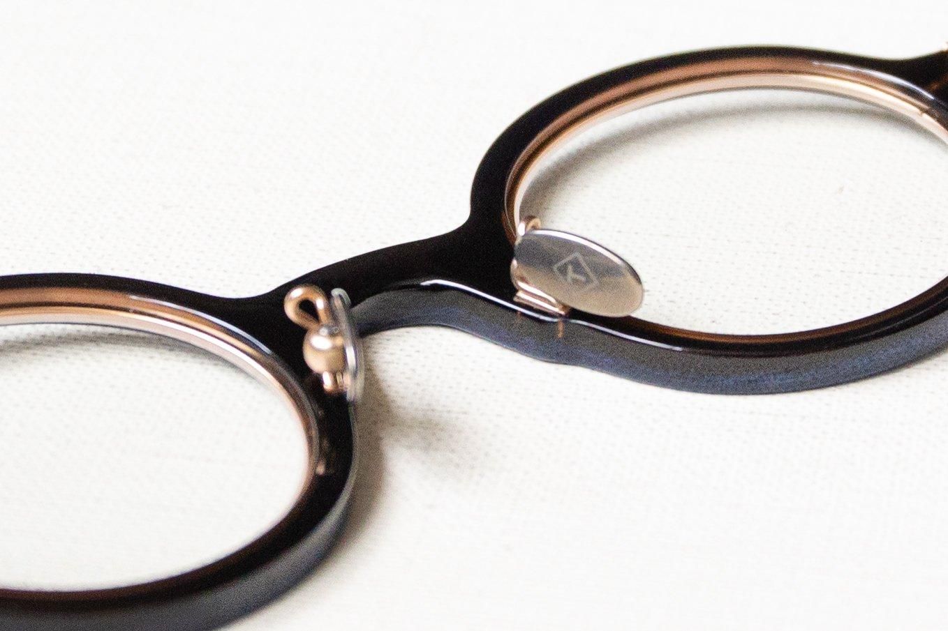 丁番部分にはネジではなく時計のリューズのデザインが採用されていて、独創的かつ機能的な構造が多くのアイウェアファンの心を掴んでいます。