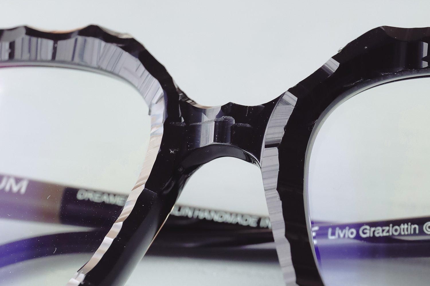 KUBORAUMはそのデザイン性だけでなく、実用性も評価されていて、バネ丁番を採用したテンプルのフィット感は、長時間の使用でも快適。もちろん、度付きレンズにも対応可能。