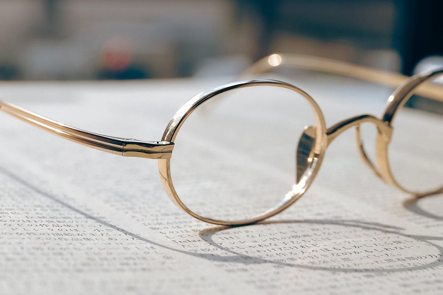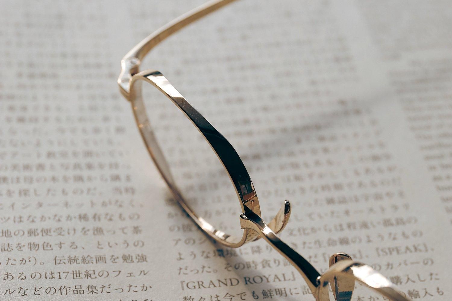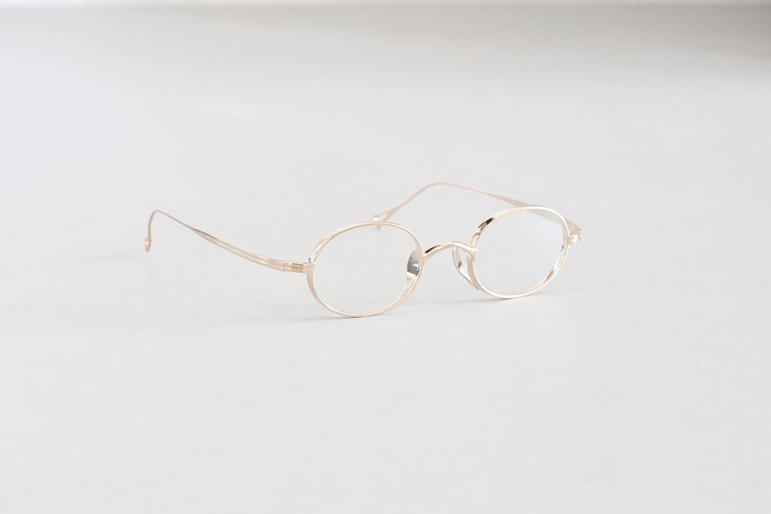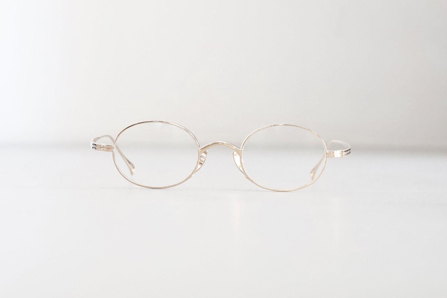 美しい艶を放つゴールドカラーが特徴のオーバルシェイプフレーム。クラシカルな厚リムデザインが程よい存在感を与えつつ、ゴールドの輝きが上品で洗練された印象を演出します。