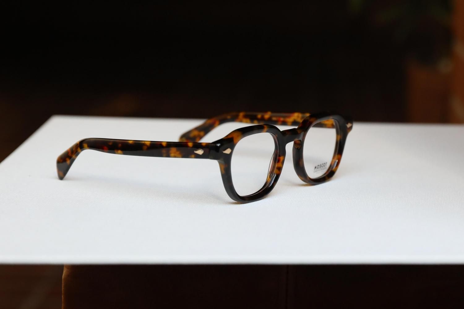 レトロでクラシカルなデザインながら、太さとテレビジョンカットの施されたフロントリムは、モスコットらしい現代的なエッセンスが加えられた個性的なモデルです。