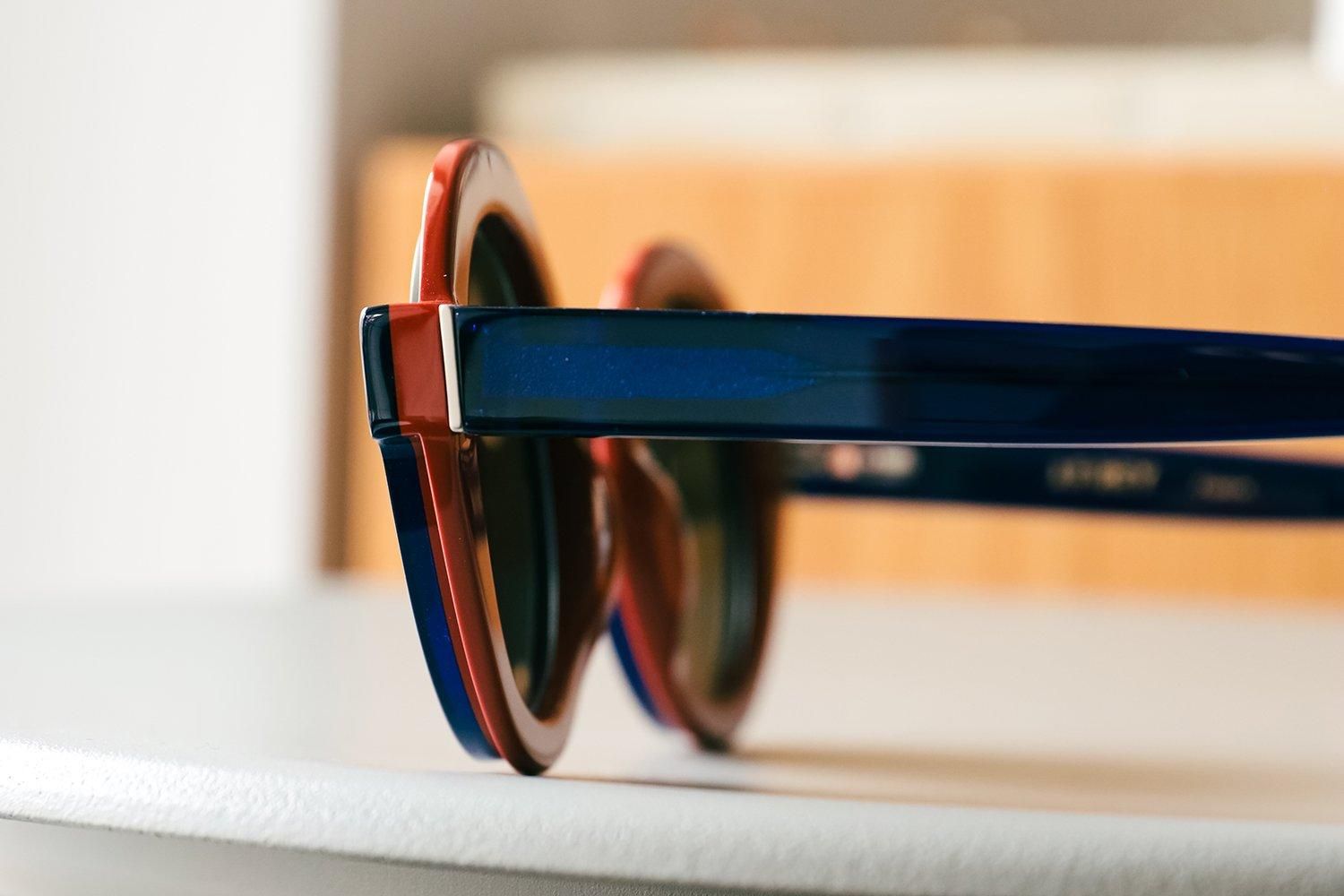 さらに、ブリッジにはさりげなくメタルパーツをイン。クラシックな雰囲気を持ちながらも、どこか未来的なニュアンスを感じさせるのがニクい。これなら、トラッドなスタイルに合わせてもハマるし、ストリートな装いのスパイスとしても抜群の存在感を放つ。