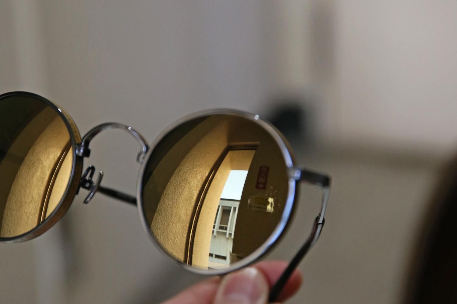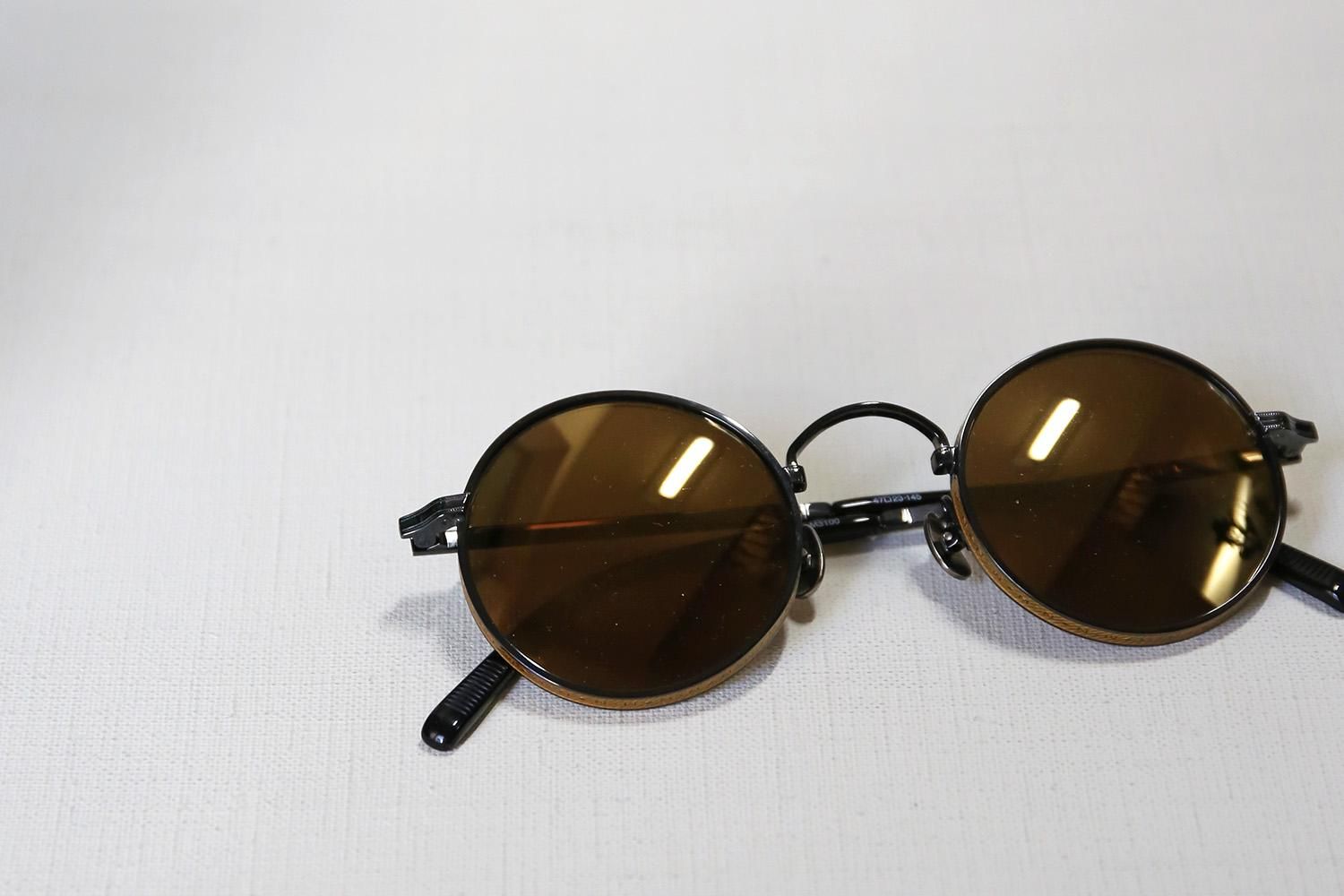 肉厚なフロントリムも相まってただのラウンドサングラスではない、一味違った奥行きを感じさせてくれる1本です。