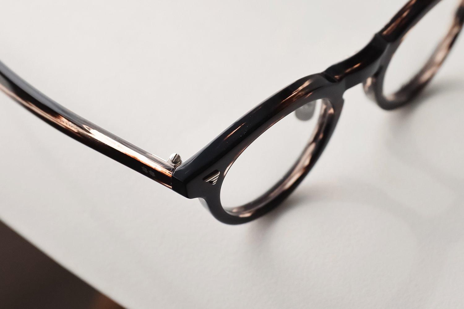 また、ヴィンテージフレームには見られない チタン製のクリングスパッド を搭載。セルロイドフレーム特有の硬質な素材感はそのままに、フィット感を向上させ、ずれ落ちる不快感を軽減しました。これにより、長時間の着用でも快適なかけ心地を実現しています。