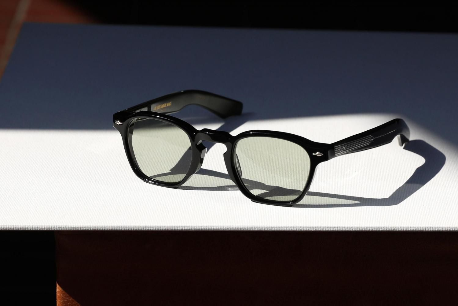 col,cobraはフロント部分が黒、テンプルは外側からクリア、黒、カーキグリーンと三色の張り合わせでシルバーの芯金が見える仕様に。※フロントの飾り蝶番もシルバーです。